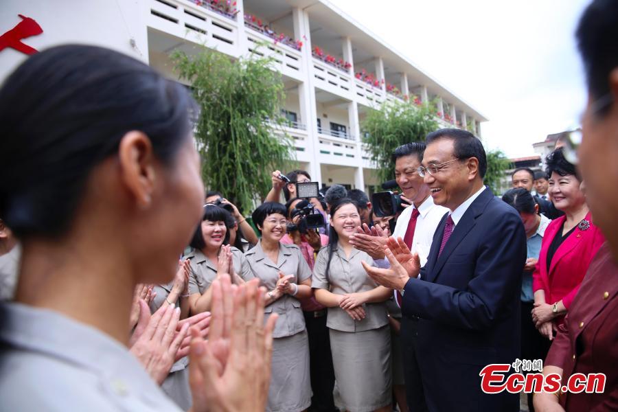 Chinese Premier Li Keqiang visits the Lieutou Chinese School in Vientiane, Laos, Sept. 9, 2016. The Lieutou Chinese School, founded in 1937 and financed by local Chinese, now hosts more than 2,800 students.(Photo: China News Service/Liu Zhen)