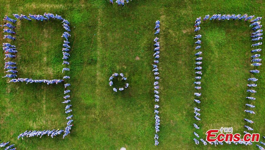 300 college students form the date of Teachers' Day in Yangzhou, east China's Jiangsu Province, Sept. 9, 2016. The students hoped to say "thank you" to the teachers one day before China's 32nd Teachers' Day, which falls on Sept. 10. (Photo: Chinanews.com/Meng Delong)