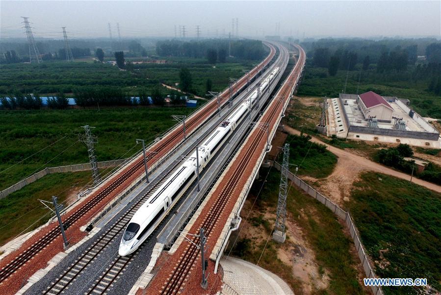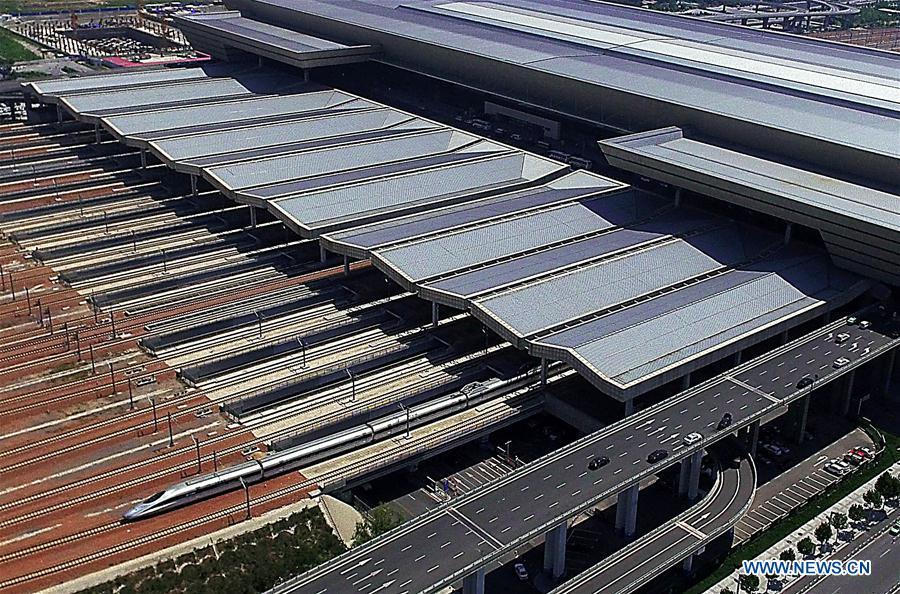 Photo taken on Sept. 6, 2016 shows high-speed trains to be overhauled at a maintenance center in Zhengzhou, capital of central China's Henan Province. China's high-speed railways now exceed 20,000 km in length with the opening of a line linking Zhengzhou in central China's Henan Province with Xuzhou in eastern Jiangsu Province on Sept. 10, 2016. The line connects the west with two major north-south lines, helping cut travel time between west and east in the country. (Photo/Xinhua)