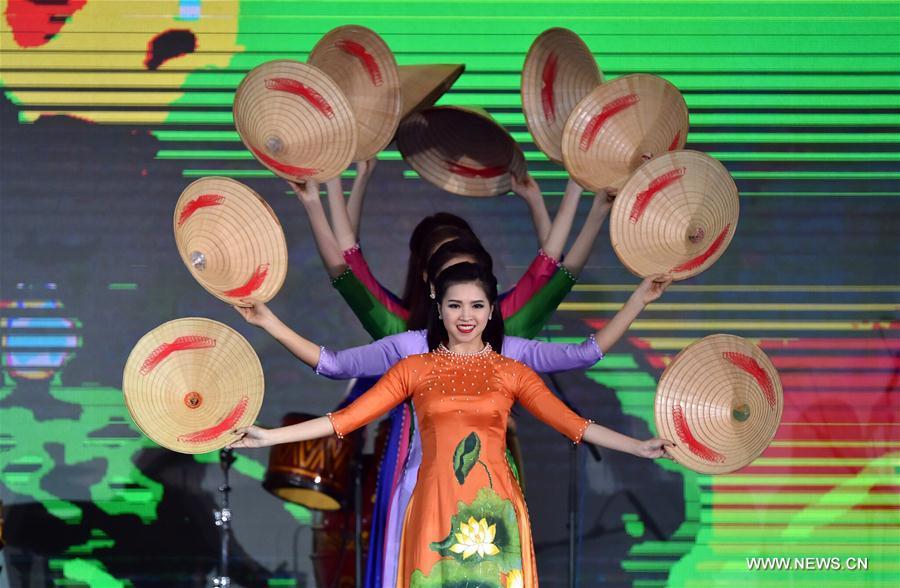 Actors perform before the opening ceremony of the 13th China-ASEAN Expo and the China-ASEAN Business and Investment Summit in Nanning, capital of south China's Guangxi Zhuang Autonomous Region, Sept. 11, 2016. (Xinhua/Huang Xiaobang)