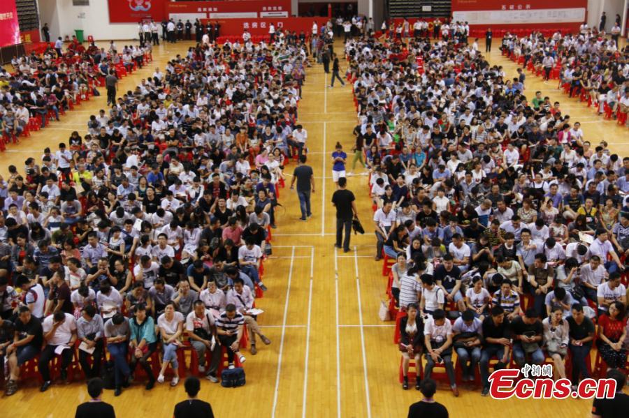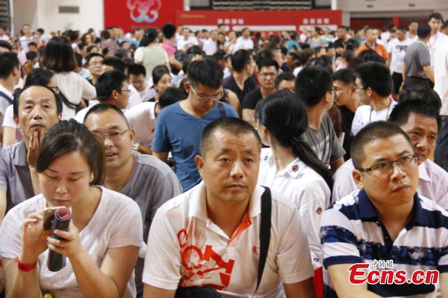 Potential home purchasers crowd a pre-sale event for a new property in a stadium in Wuxi City, East China’s Jiangsu Province, Sept. 10, 2016. The rise in housing prices in the city took the lead in the country. (Photo: China News Service/Sun Quan)