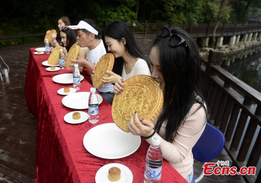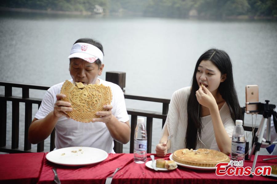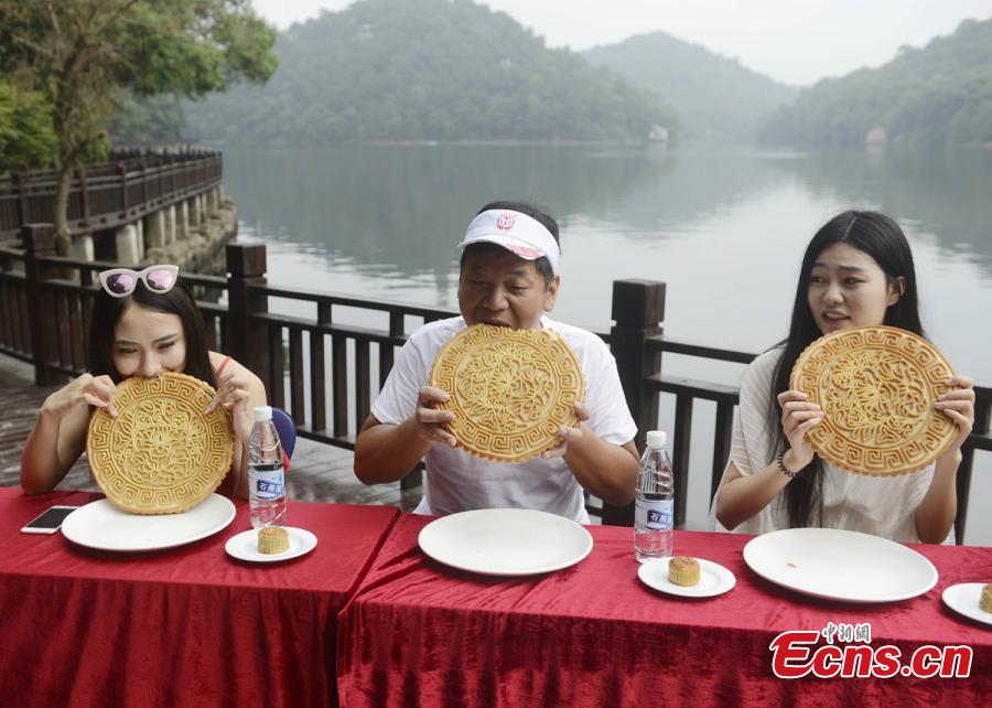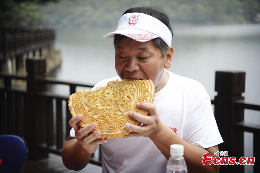 Eater finishes 2-kg mooncake in 28 minutes(1/7)
