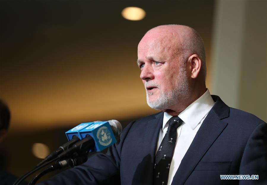 Peter Thomson(C), president of the 71st United Nations General Assembly, gavels to open the 71st session of the UN General Assembly, at the UN headquarters in New York, Sept. 13, 2016. The UN General Assembly on Tuesday kicked off its 71st session at UN Headquarters in New York, with a focus on the joint world efforts to carry out the Sustainable Development Goals (SDGs), a blueprint for the global development efforts for the years up to 2030. (Photo/Xinhua)