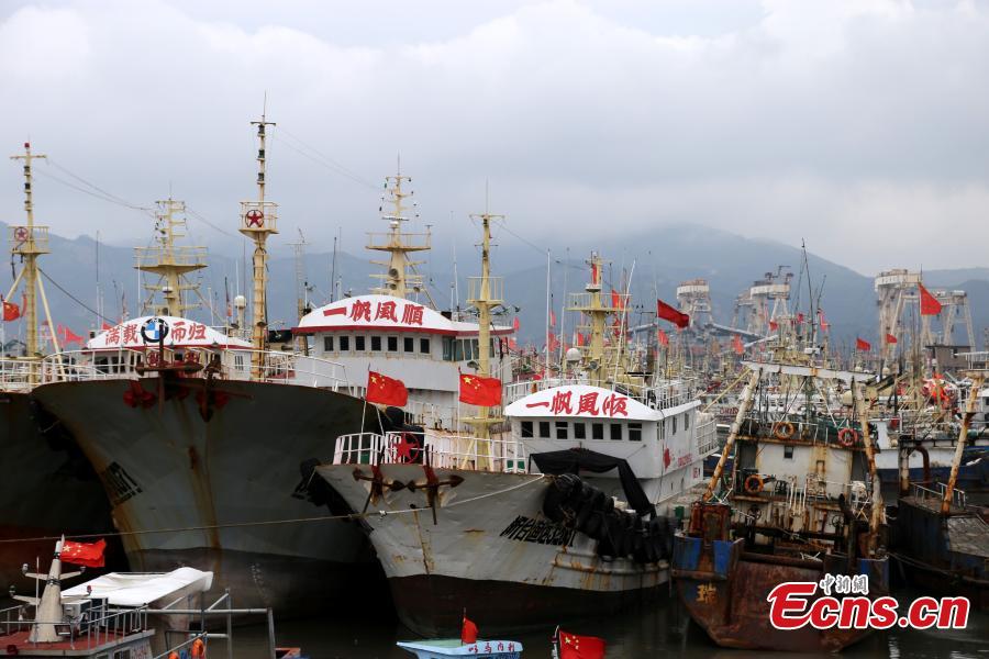Fishing boats are docked at a port ahead of typhoon Malakas in Wenling City, East China’s Zhejiang Province, Sept. 17, 2016. The State Flood Control and Drought Relief Headquarters activated a level III emergency response to cope with approaching Malakas. Malakas will be the 16th storm of this year's typhoon season, coming after Typhoon Meranti made landfall in Fujian province on Thursday. (Photo: China News Service/Jin Yunguo)
