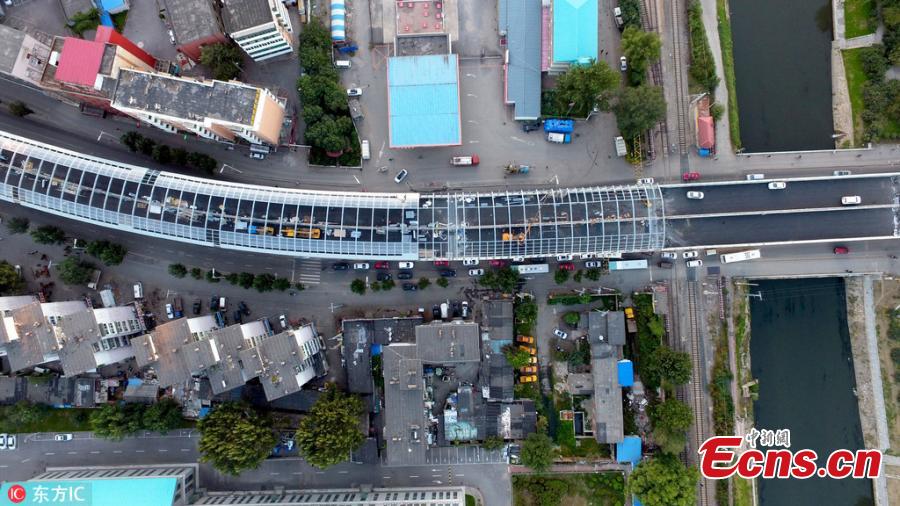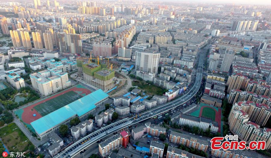 A view of a main road under construction in Shenyang City, the capital of Northeast China’s Liaoning Province, Sept. 18, 2016. The road will have a section about 1,000 meters long fully covered by noise-reduction shelters. The new road will be opened to the public by the end of this month. (Photo/IC)
