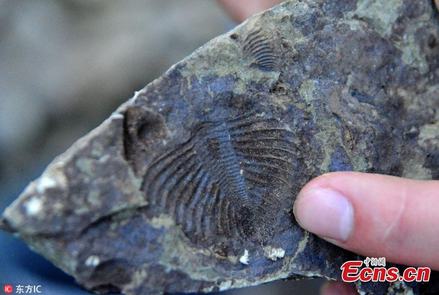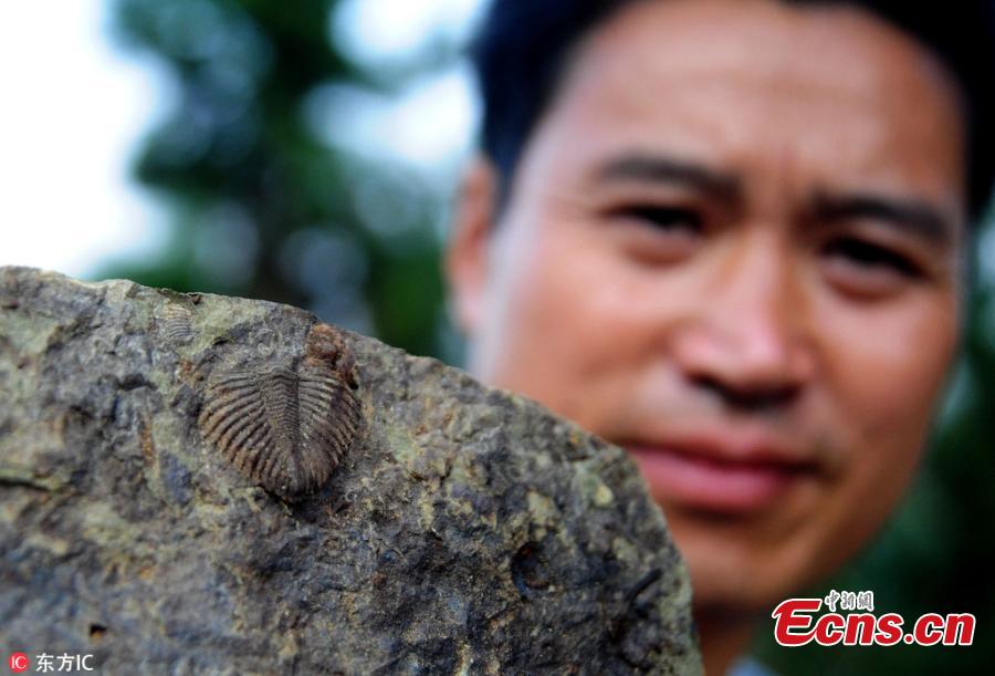 A man shows a suspected trilobite fossil at a village in Youyang Tujia and Miao Autonomous County, Southwest China’s Chongqing Municipality, Sept. 18, 2016. Local authorities are investigating whether it is a trilobite, one of the earliest known groups of arthropods from about 100 million years ago. (Photo/IC)