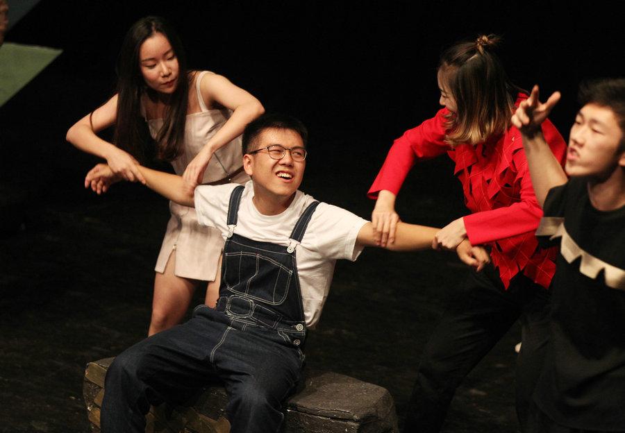 A Midsummer Night's DREAMING Under the Southern Bough made a splash in Beijing Tuesday. Students from the University of Leeds performed a contemporary adaptation based on the Chinese ancient play Nanke Ji. (Photo/China Daily)