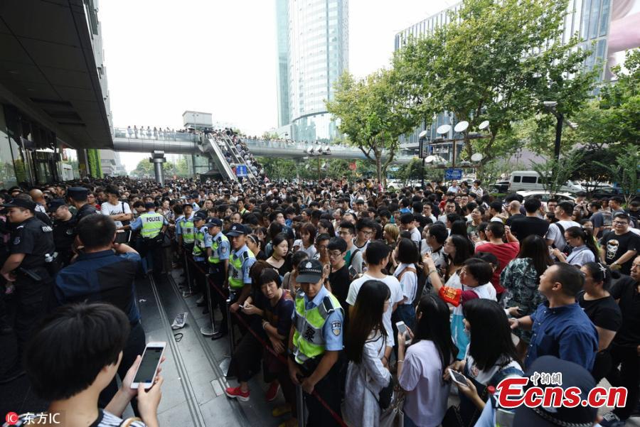Customers wait to enter a mall, where branded products are sold at half price, in Hangzhou City, the capital of East China’s Zhejiang, Sept. 23, 2016. (Photo: China News Service/Wu Sichuan)