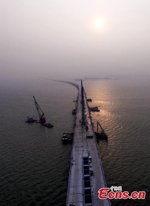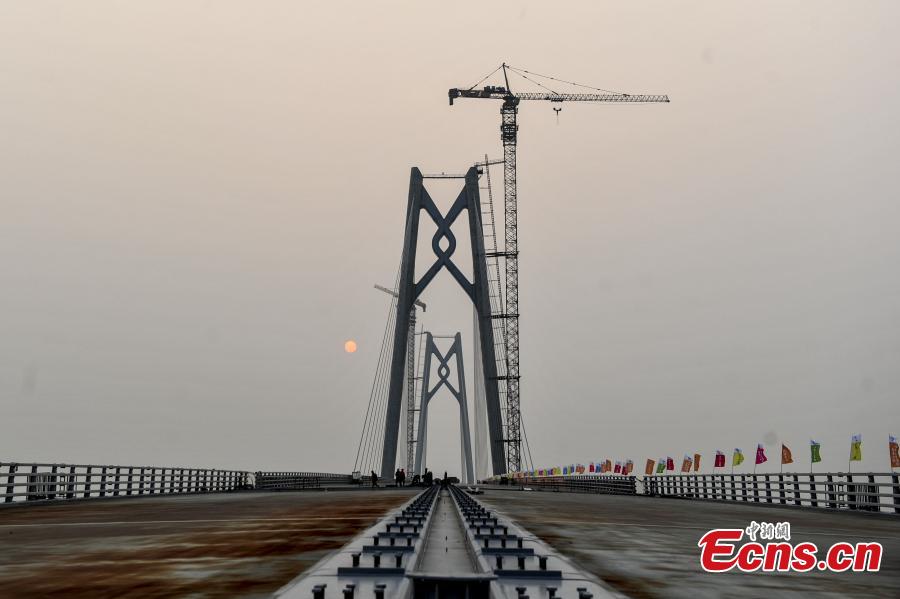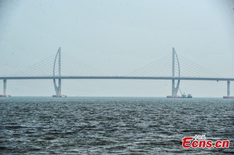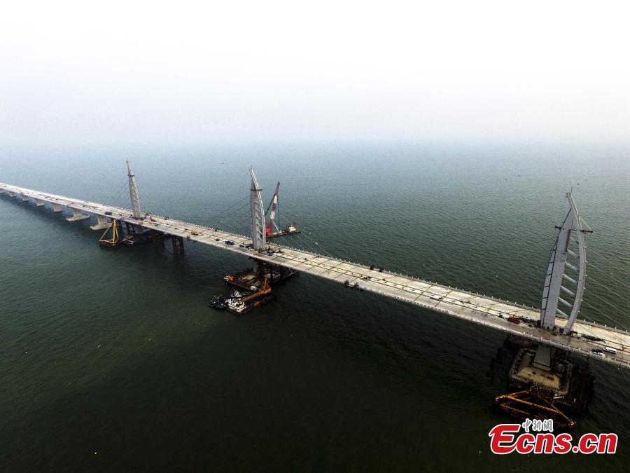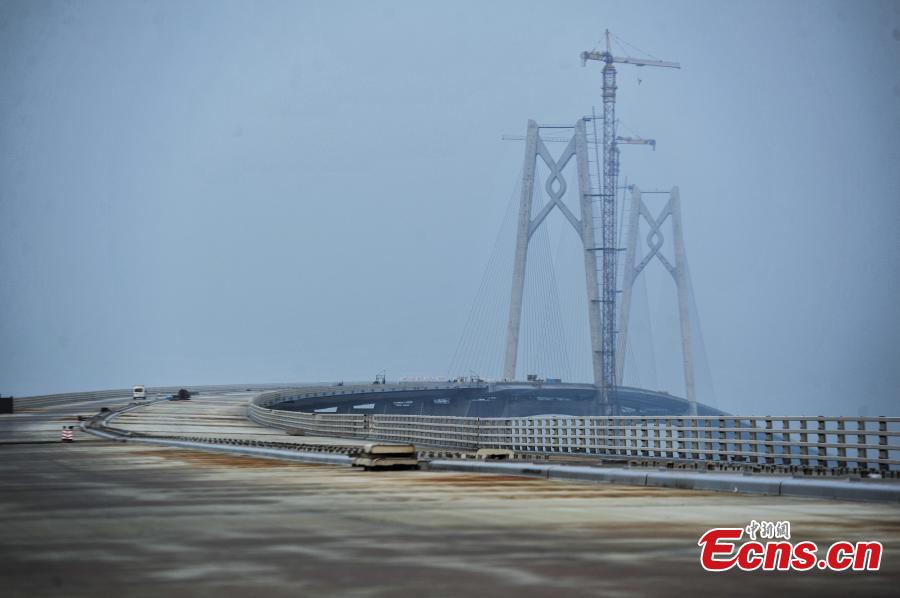 A view of the Jiuzhou section of the Hong Kong–Zhuhai–Macao Bridge, Sept. 26, 2016. Construction of the main bridge of the sea-crossing project in the Pearl River Estuary will be complete on Sept. 27, said authorities. Hong Kong–Zhuhai–Macao Bridge (HZMB) will have a total length of about 55 km, including a 6.7 km underwater tunnel and a 23-km bridge over the sea, making it the longest cross-sea bridge in the world. The project is part of the country’s planned national highway network, linking the western and eastern banks of the Pearl River. It is to meet the demand of passenger and freight transport among Hong Kong, mainland and Macao. (Photo: China News Service/Chen Jimin)