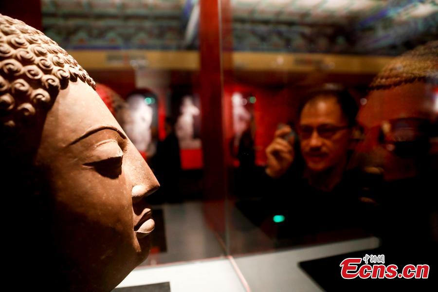 Sculptures are on display at an exhibition at the Palace Museum in Beijing, Sept. 27, 2016. The display includes 56 sculptures from nine museums in India and 119 sculptures from across China, all made between 400 and 700AD, as a part of a China-India cultural exchange. (Photo: China News Service/Du yang)