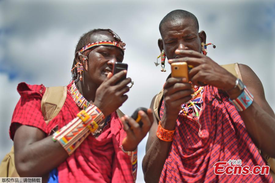 Kenyan Maasai 'Morans' (warriors) relay the GPS coordinates of the location of two-young lionesses they have been tracking on foot in the surrounding scrub, at the Selenkay Reserve in Kenya. In the Maasai heartland of southern Kenya, some young men have swapped their ancestral role as lion-hunters to instead protect the big cats under a conservation scheme that also aims to help their community.(Photo/Agencies)