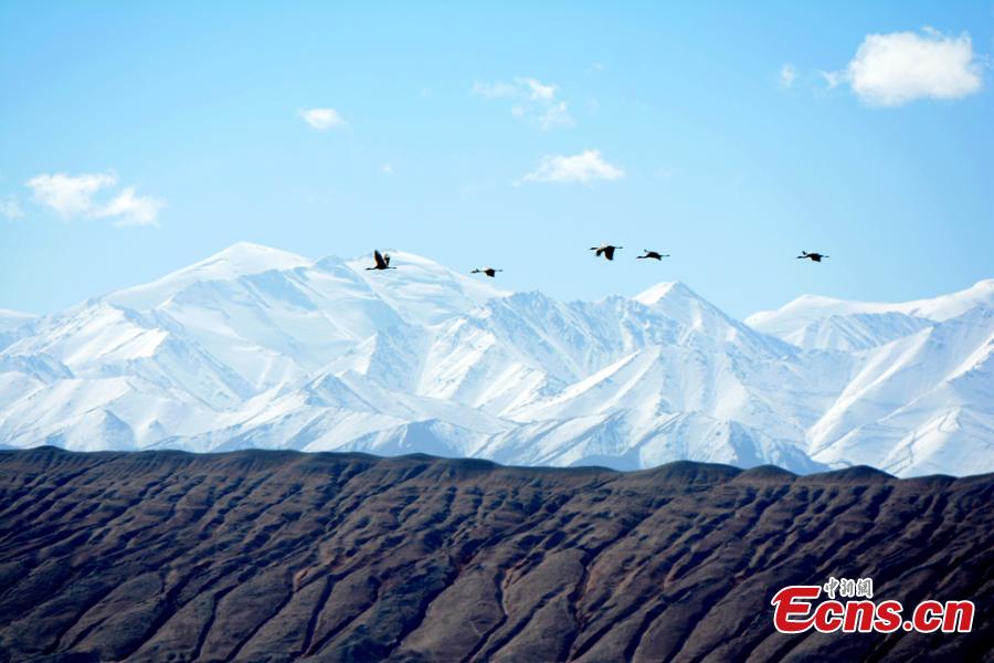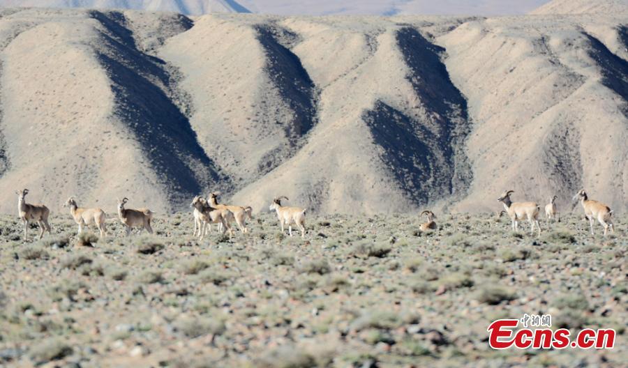 Argali sheep roam in the Yanchiwan Nature Reserve in Subei County, Northwest China’s Gansu Province. The nature reserve has seen the arrival of a rising number of wild animals under the first and second-degree protection, including snow leopards, Tibetan gazelles and black-necked cranes, due to enhanced efforts in environmental protection. (Photo: China News Service/Wu Renhua)