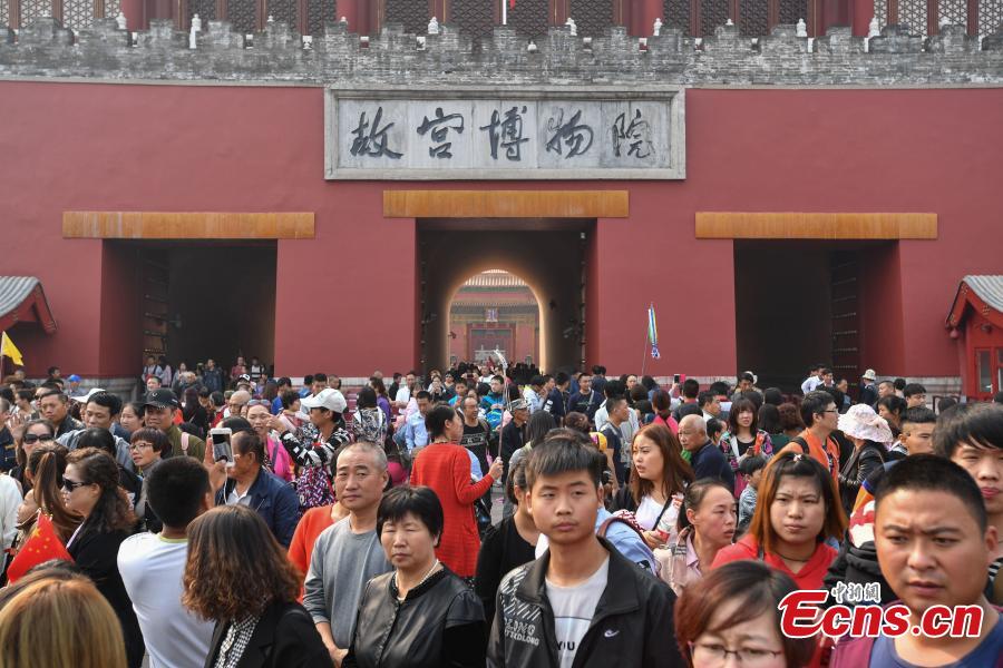 People visit the Palace Museum, also known as the Forbidden City, in Beijing, capital of China, Oct. 1, 2016. (Photo: China News Service/Cui Nan)