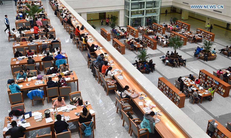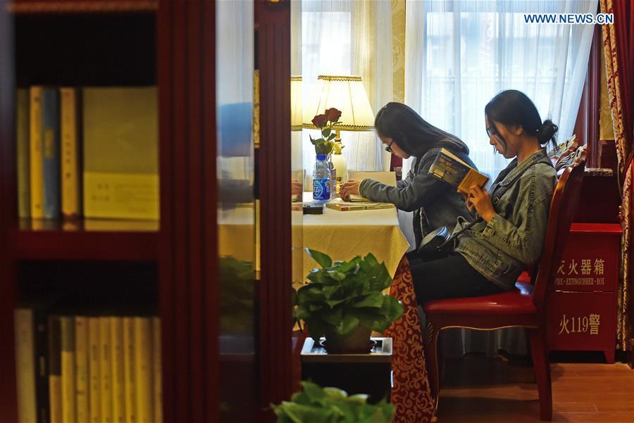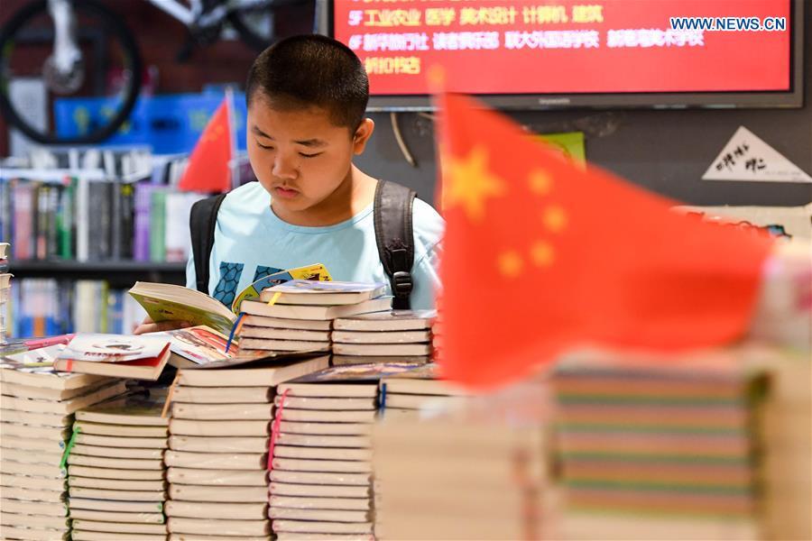 A boy reads a book in a bookstore in Zhengzhou, capital of central China's Henan Province, Oct. 5, 2016, during the National Day holiday. (Xinhua/Li Bo)