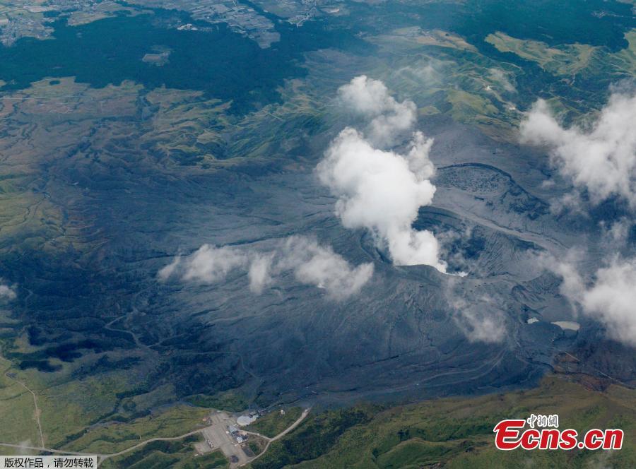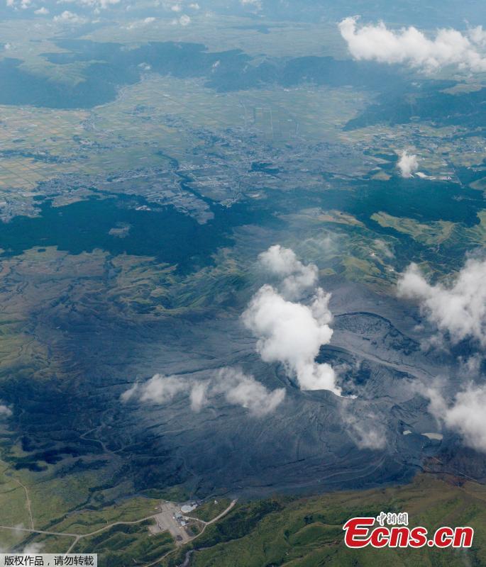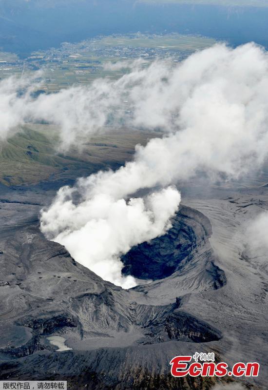 An aerial view shows the eruption of Mount Aso in Aso, Kumamoto prefecture, southwestern Japan, Oct. 8, 2016. Mount Aso, a volcano on Japan's main southern island of Kyushu, erupted early on Saturday, Japan's Meteorological Agency said, spewing volcanic ash 11,000 meters into the sky. Japanese media said there were no immediate reports of injuries from the eruption. Mount Aso previously erupted in September last year, rumbling to life after being dormant for 19 years. (Photo/Agencies)