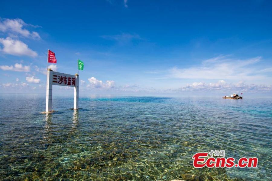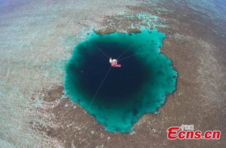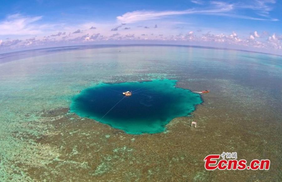 The file photo shows Sansha Yongle Blue Hole in Xisha Islands in Sansha City, South China’s Hainan Province. Sansha city in South China's Hainan province, the country's southernmost city, has banned fishing and tourism in and around the world's deepest blue hole as part of its efforts to protect the maritime environment in the South China Sea. Organizations and individuals are forbidden from the activities in Longdong-known as "Dragon Hole"-or within 1 nautical mile of the blue hole, according to a notice issued by the management committee of the Yongle Islands in Sansha. Other activities concerning the blue hole, such as scientific expeditions and environmental protection programs must be approved by the government, according to the notice. (Photo: China News Service/ Luo Yunfei)
