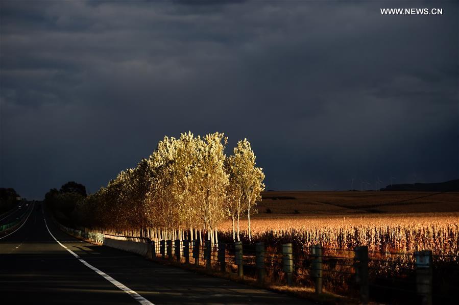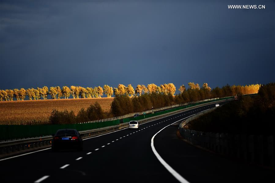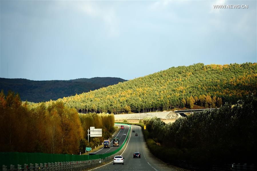 Photo taken on Oct. 9, 2016 shows autumn scenery along the Hatong Highway linking Harbin and Tongjiang cities in northeast China's Heilongjiang Province. (Photo/Xinhua)