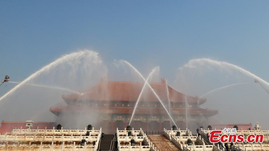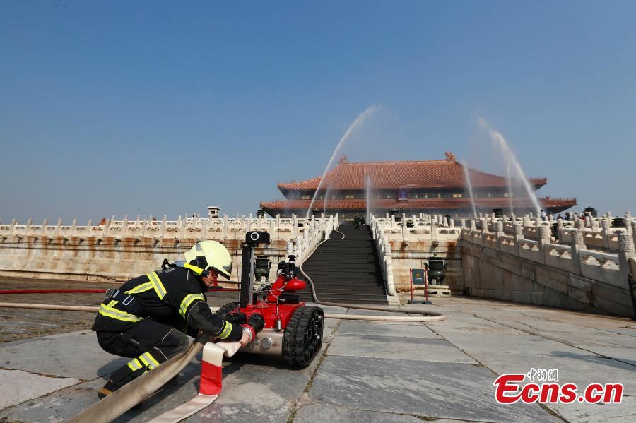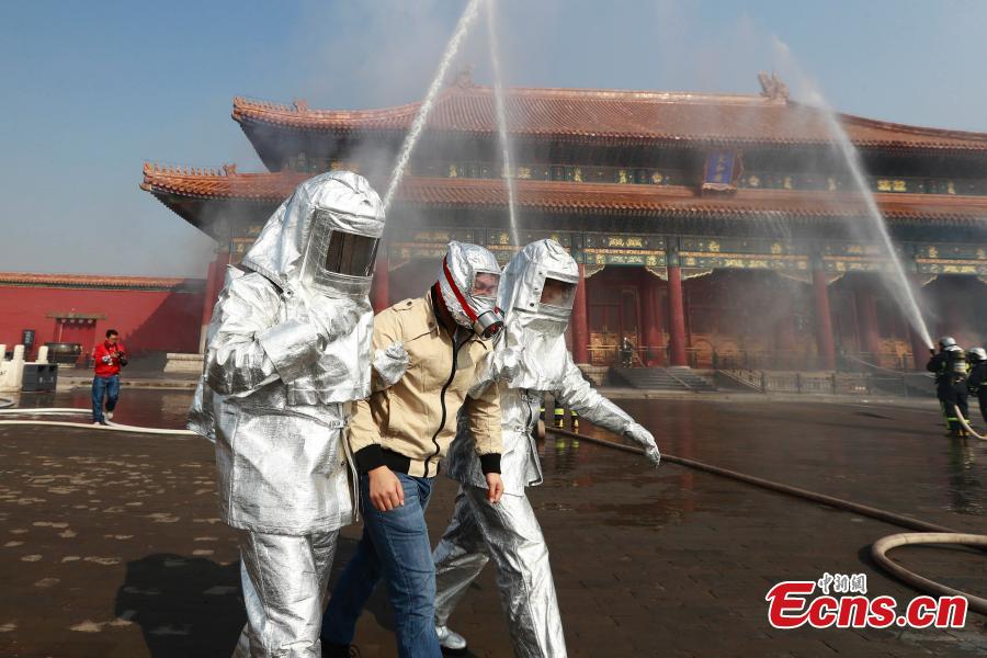 Palace Museum holds fire drill ahead of anniversary(1/8)