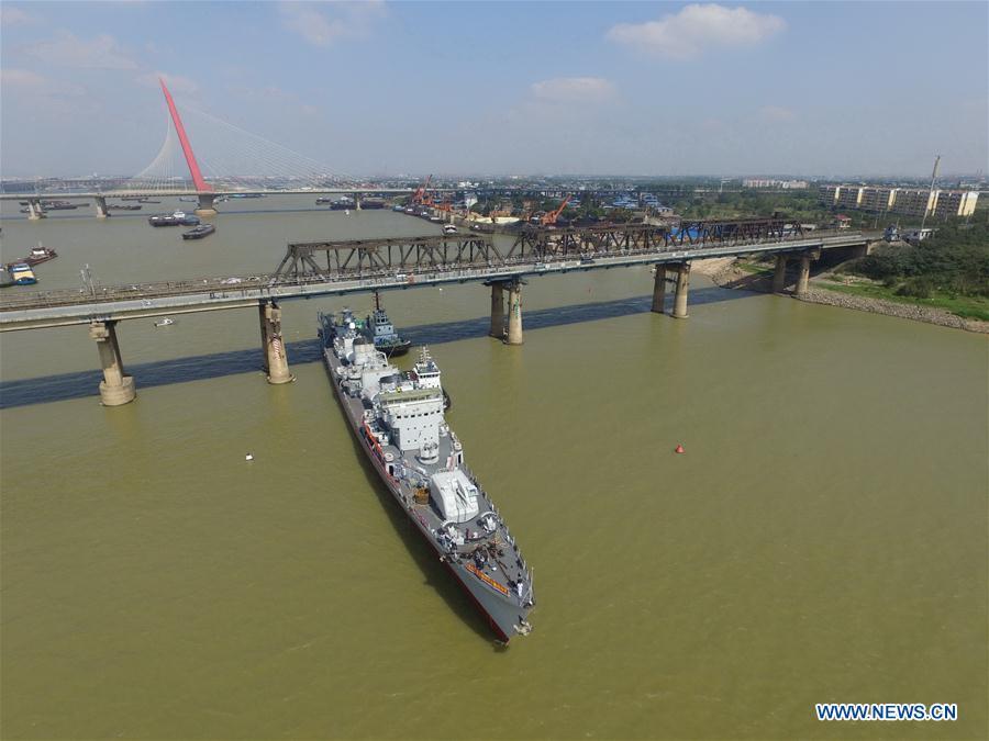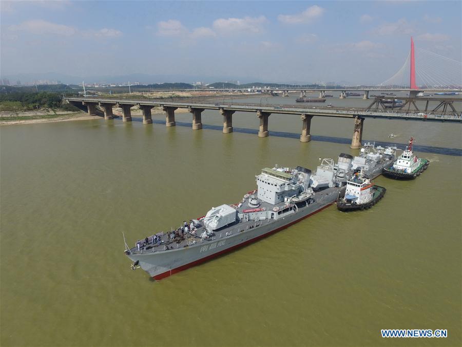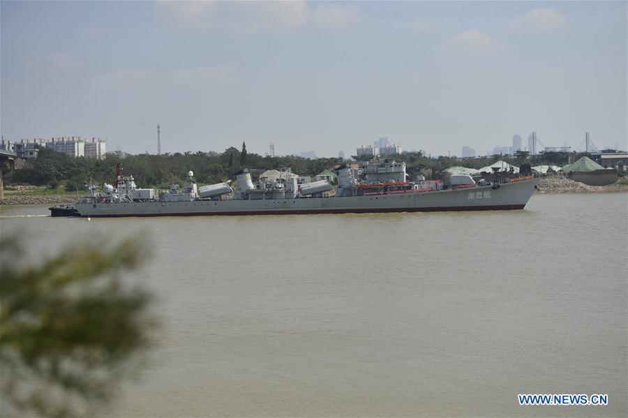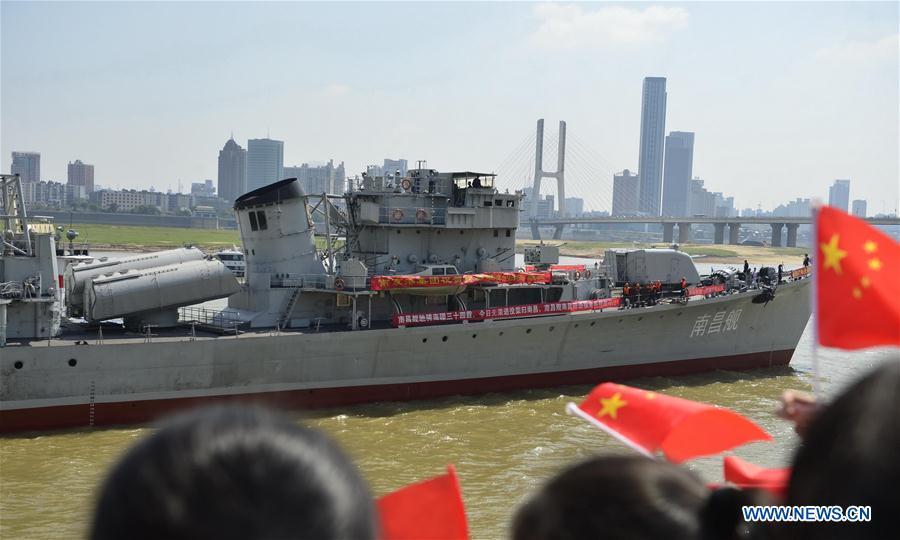 Citizens welcome the arrival of missile destroyer Nanchang in Nanchang, capital of east China's Jiangxi Province, Oct. 10, 2016. The warship began to serve in China's navy in the 1980's and was officially decommissioned as of Sept. 8, 2016. It will become a local military-themed park in Nanchang. (Photo/Xinhua)