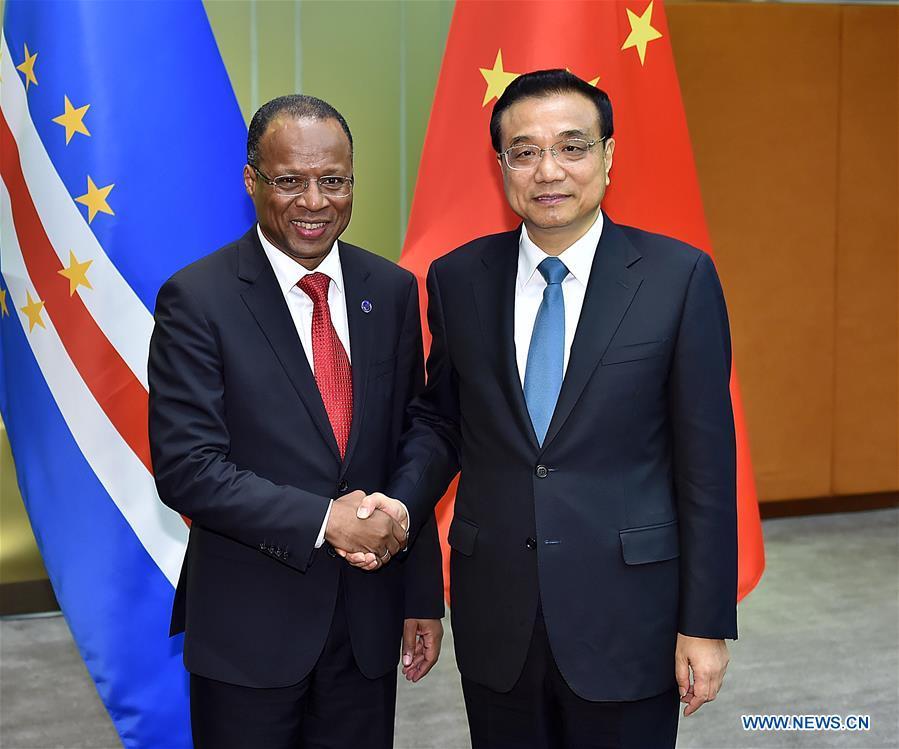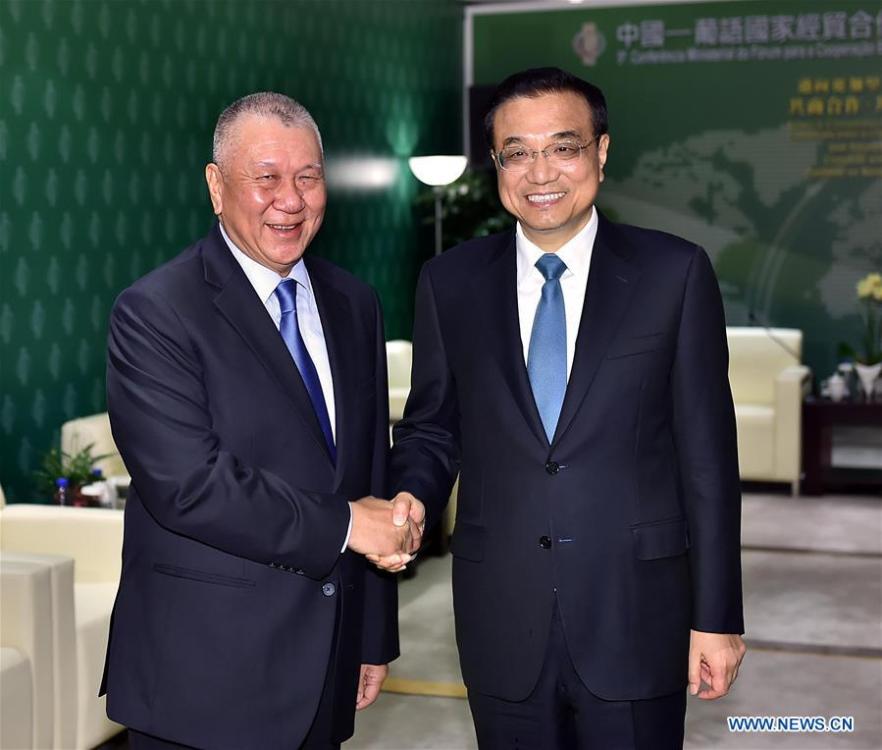 Chinese Premier Li Keqiang (R) shakes hands with his Cape Verde counterpart Ulisses Correia e Silva, who is in Macao for the opening ceremony of the fifth Ministerial Conference of the Forum for Economic and Trade Cooperation between China and Portuguese-speaking countries in Macao, south China, Oct. 10, 2016. (Xinhua/Li Tao)