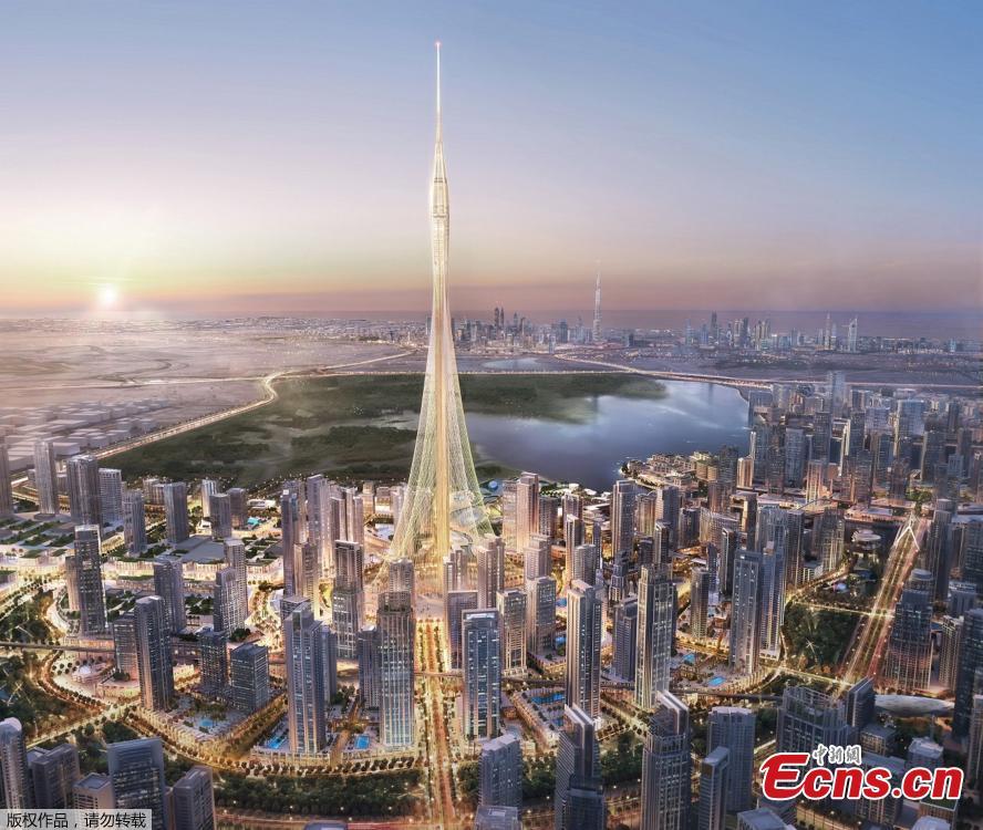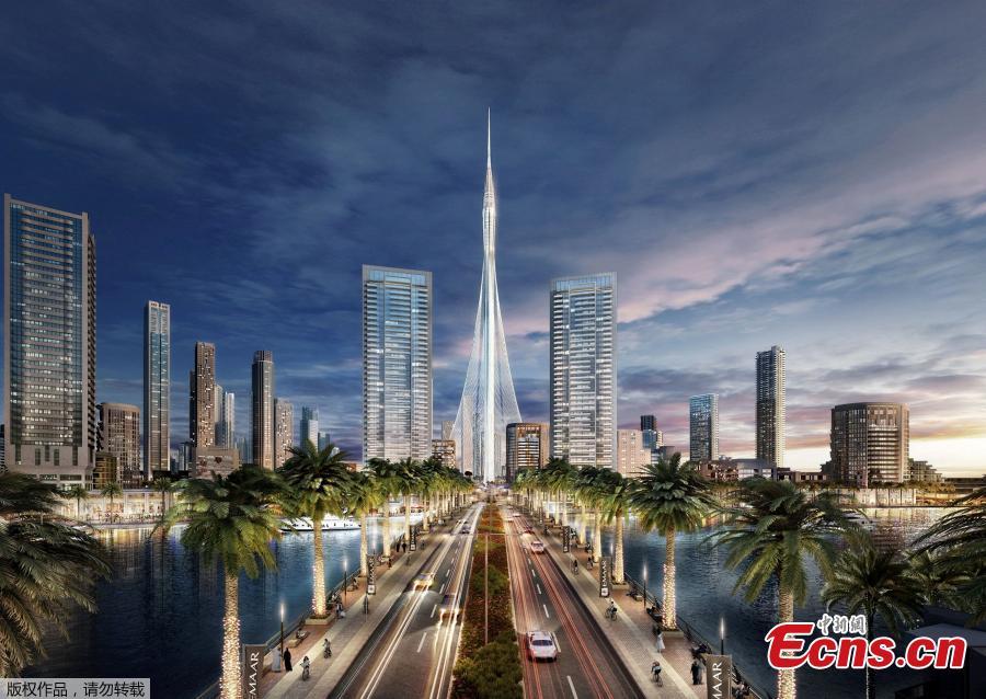 A rendering of The Tower at Dubai Creek Harbour, which will be the world's tallest tower when completed in 2020. Dubai's developer giant Emaar Properties announced plans to build the viewing tower in April, saying it will be "a notch" higher than Burj Khalifa, which stands 828 meters high. Emaar has not revealed the exact final height of the tower. It said in April that the structure will cost around $1 billion. Designed by Spanish-Swiss architect Santiago Calatrava Valls, the tower will have observation decks providing 360-degree views of the coastal city. (Photo/Xinhua)