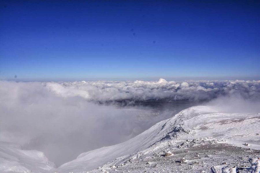 Tianchi Lake on Changbai Mountain recently embraces its first snowfall after entering autumn. Wrapped up in a silver-white blanket, the renowned resort looks cool and unique, making it a perfect destination for this time of year. (Photo provided to chinadaily.com.cn)