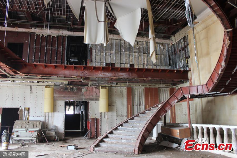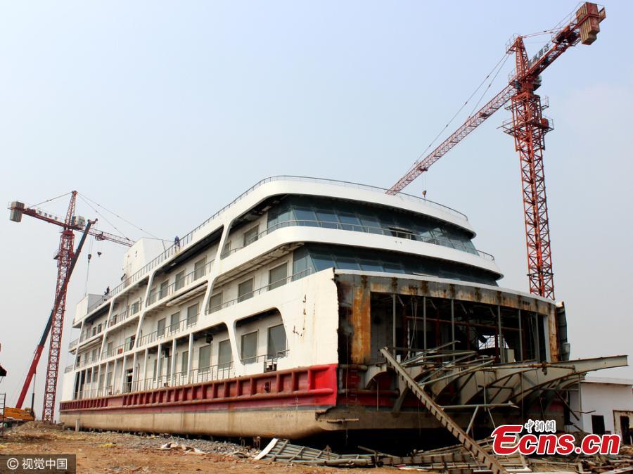 A cruise ship under renovation in Zhenjiang City, East China’s Jiangsu Province, Oct. 12, 2016. The ship, built with an investment of 50 million yuan ($7.4 million), has not operated since it failed an environmental assessment, and has been left in a state of disrepair in the city. The ship is now being renovated to transform it into a high-end hotel. (Photo/CFP)