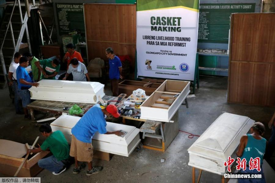 A former drug user undergoing rehabilitation makes coffins as part of a local government drug rehabilitation program for people involved with the drugs "Shabu" (Methamphetamine Hydrochloride) in Olongapo city, northern Philippines, October 5, 2016. More than 700,000 drug users and pushers have registered with the authorities in a process termed “surrendering”, but there are few programs or facilities to help most of them.(Photo/Agencies)