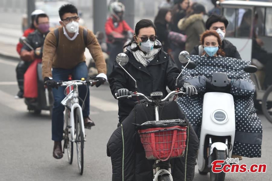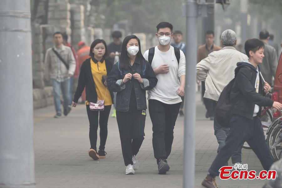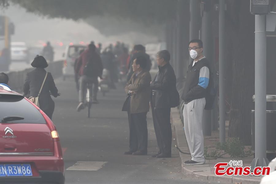 Heavy smog and fog hit Beijing, Oct. 14, 2014. Beijing issued a yellow alert for smog amid air pollution and fog that reduced visibility to about one kilometer. China has a four-tier color-coded weather warning system, with red representing the most severe weather, followed by orange, yellow and blue. (Photo: China News Service/Jin Shuo)