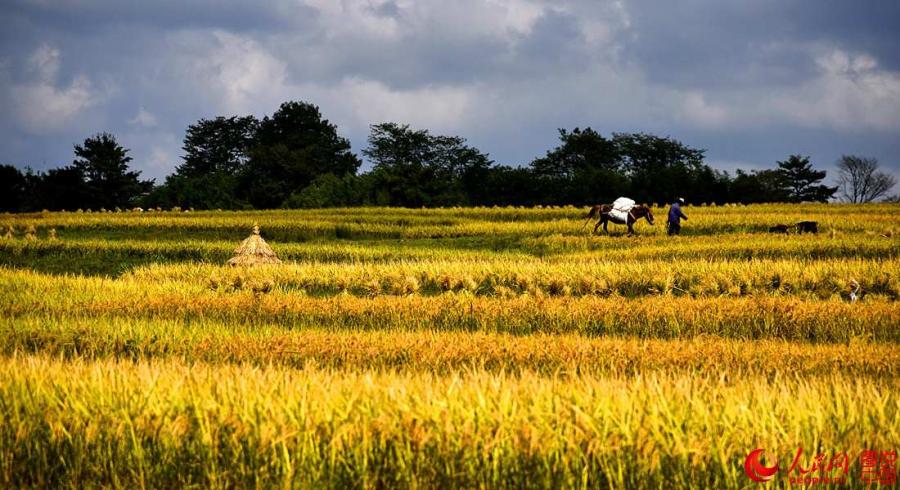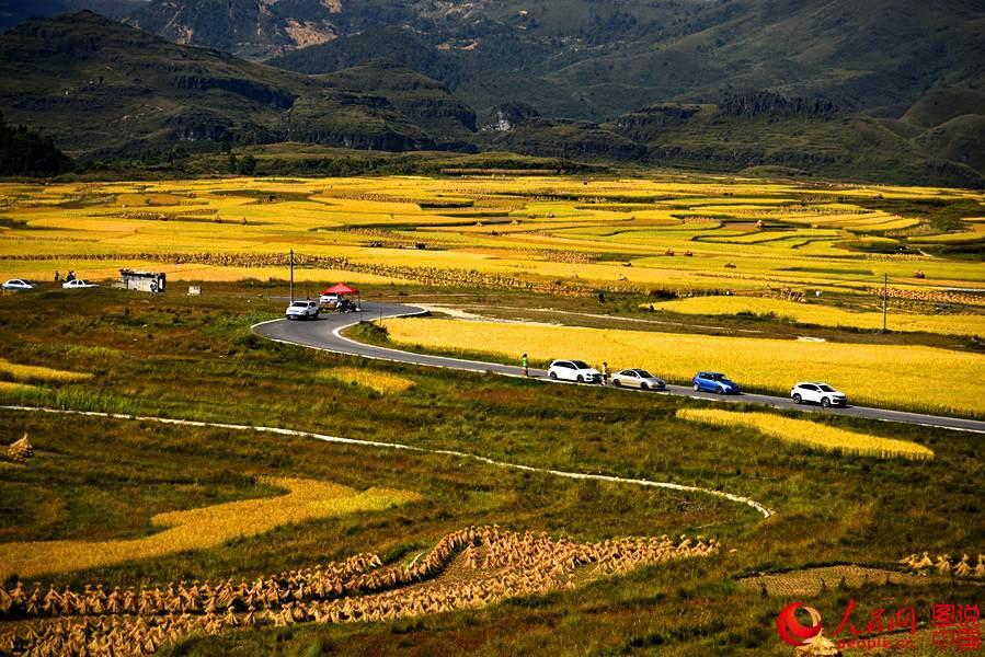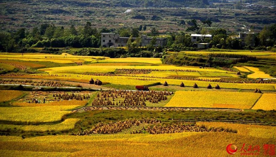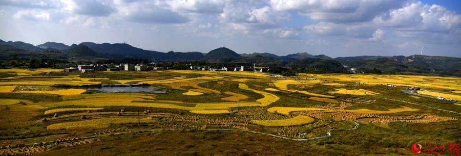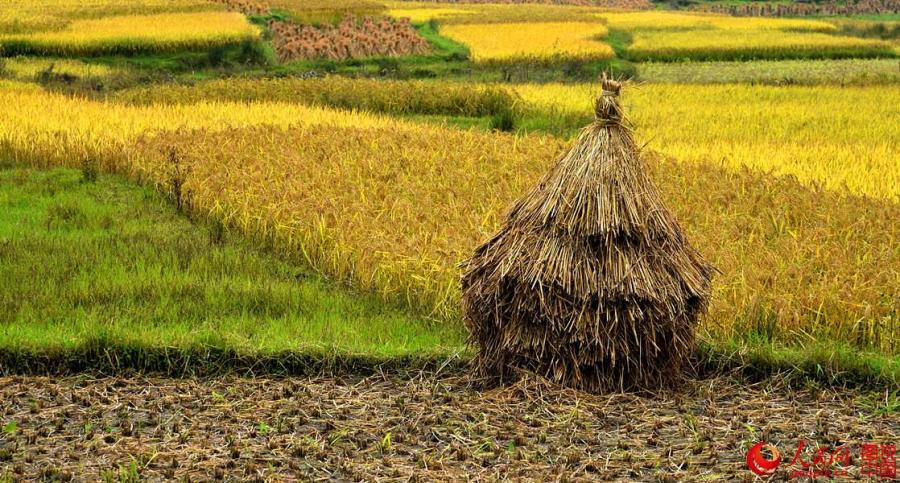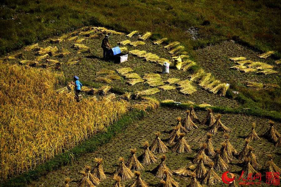 Located 1,500 meters above sea level, Gaopo Village in the city of Guiyang is home to many people of the Miao ethnic minority. October is the month during which local farmers harvest their paddy rice. (Photo/people.cn)