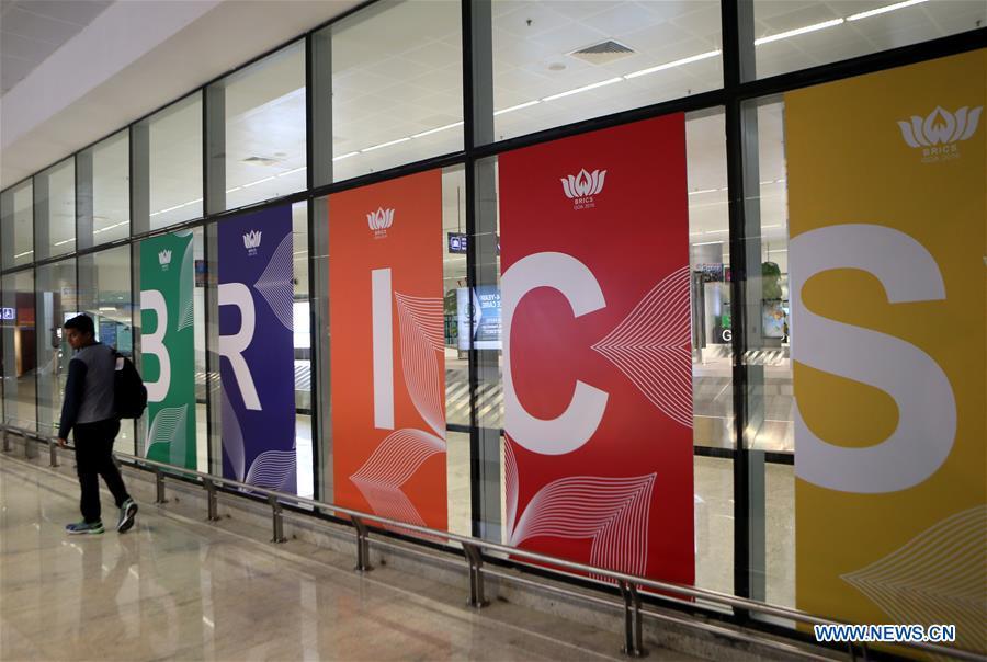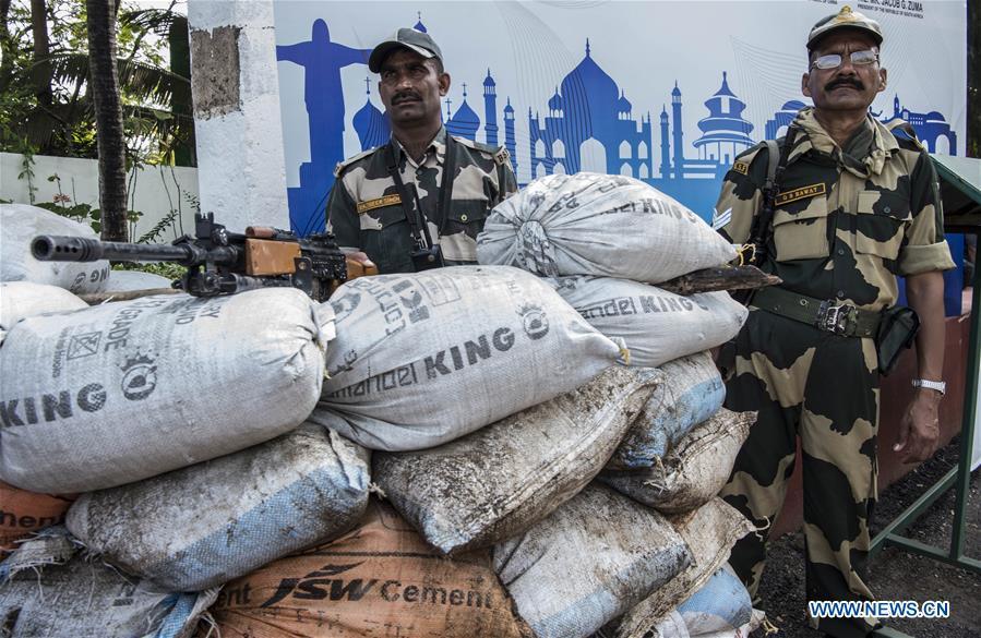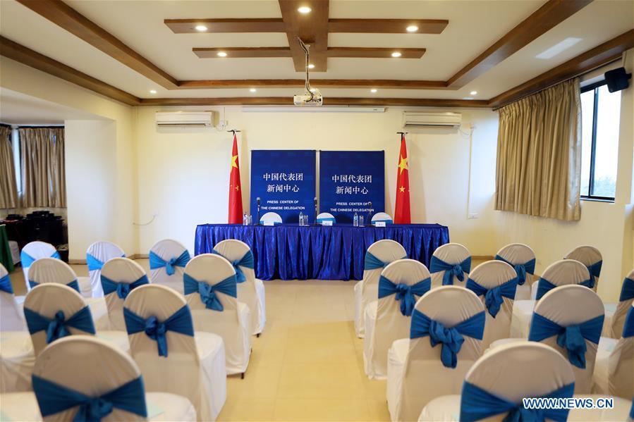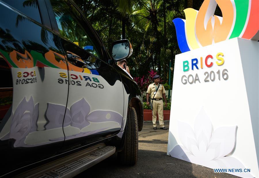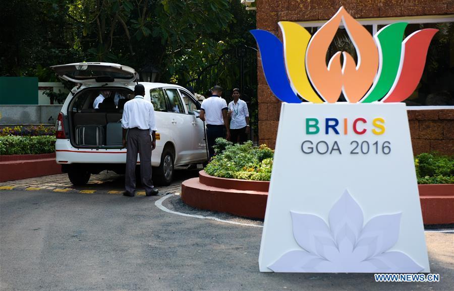 People talk at the press center of the Chinese delegation in Goa, India, Oct. 14, 2016. The 8th BRICS summit will be held in Goa of India on Oct. 15 to 16. (Xinhua/Li Peng)