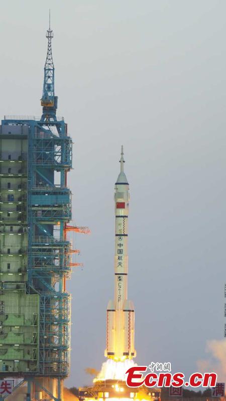 The Long March-2F carrier rocket carrying China's Shenzhou-11 manned spacecraft blasts off from the launch pad at the Jiuquan Satellite Launch Center in Jiuquan, northwest China's Gansu Province, Oct. 17, 2016. (Photo: Xinhua/Li Gang)