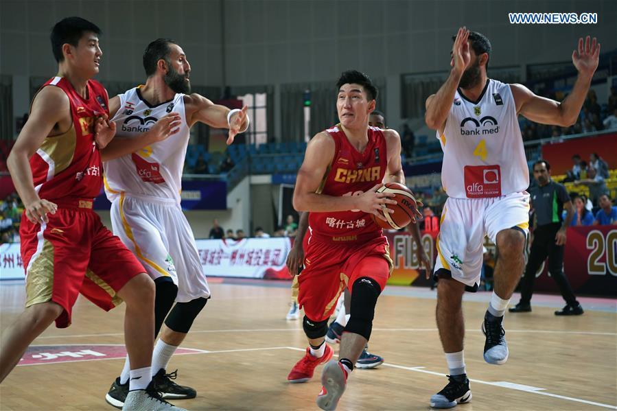 Players of China Xinjiang Kashgar react on the podium during the awarding ceremony at the 25th FIBA Asia Champions Cup in Chenzhou, central China's Hunan Province, Oct. 16, 2016. China Xinjiang Kashgar claimed the title by beating Al Riyadi of Lebanon in the final with 96-88. (Photo/Xinhua)