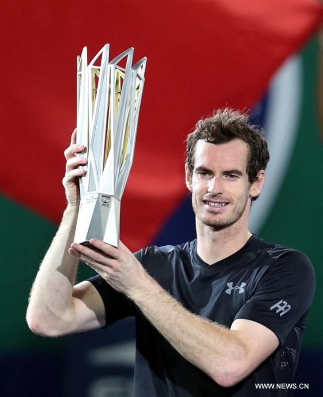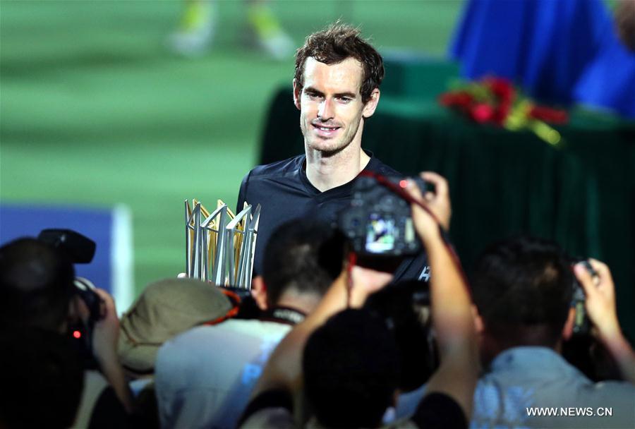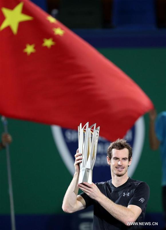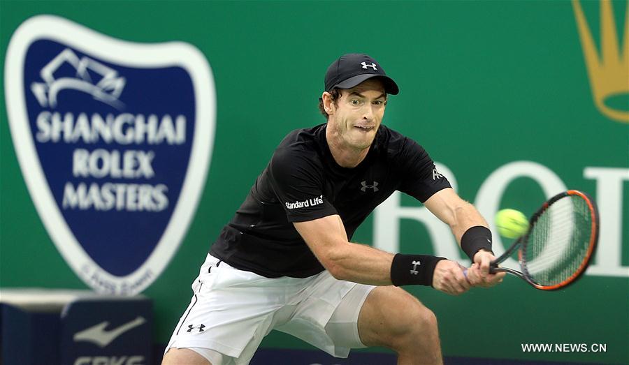 Andy Murray of Britain returns the ball during the men's singles final against Roberto Bautista Agut of Spain at the Shanghai Masters tennis tournament in Shanghai, east China, Oct. 16, 2016. Andy Murray won 2-0 to claim the title of the event. (Photo/Xinhua)
