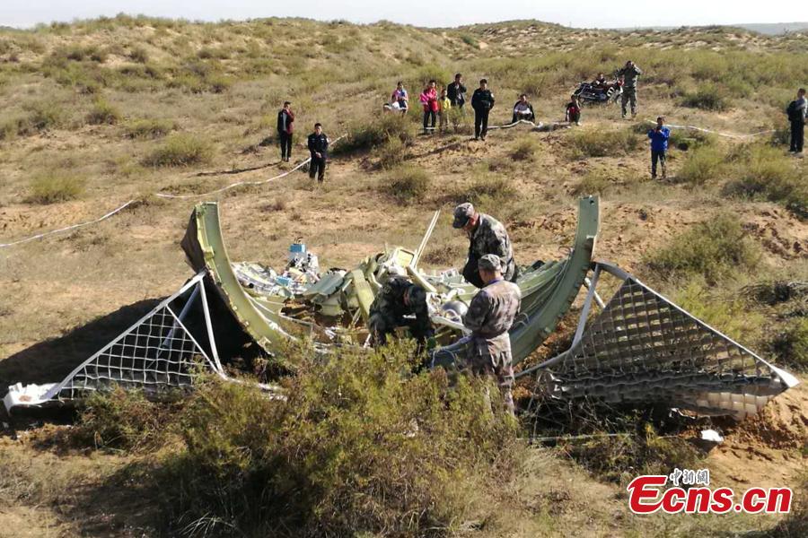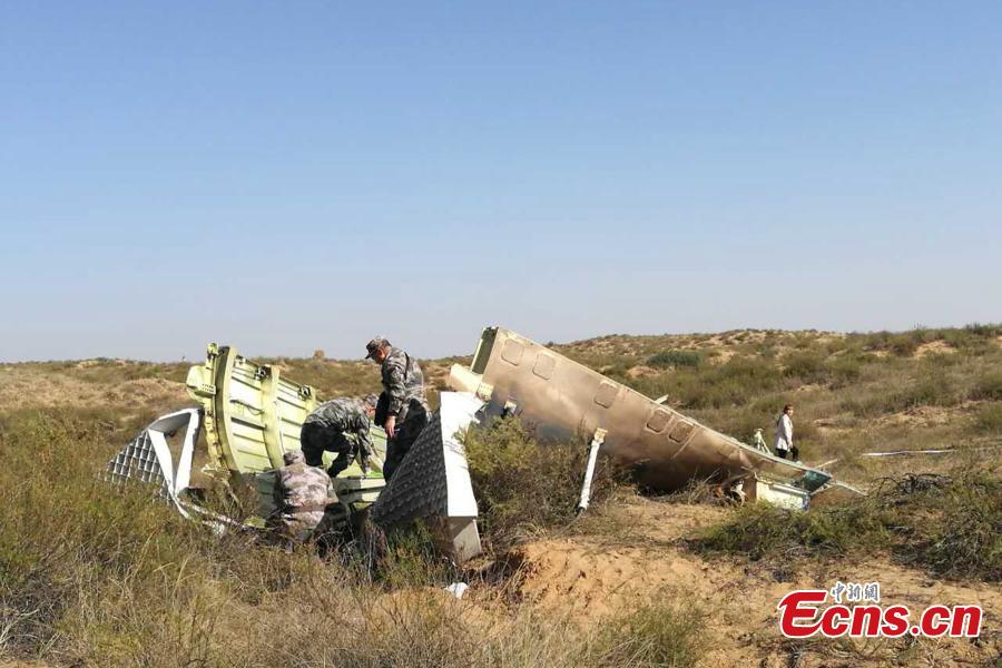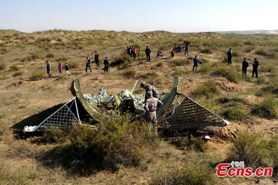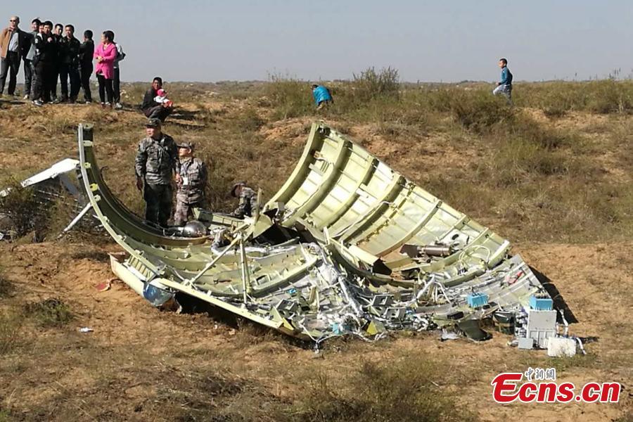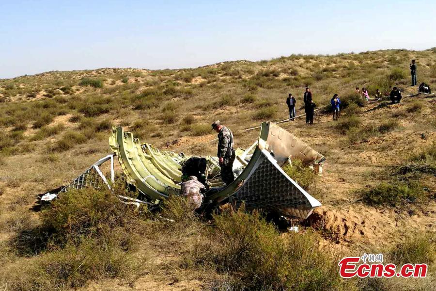 Fairing fragments and a black box from the Shenzhou-11 manned spacecraft are found in Yuyang District, Yulin City, North China’s Shaanxi Province, Oct. 17, 2016. The Long March-2F carrier rocket for China's Shenzhou-11 manned spacecraft blasted off from the launch pad at the Jiuquan Satellite Launch Center in Jiuquan, Gansu Province on Monday. (Photo: China News Service/Wang Yongping)
