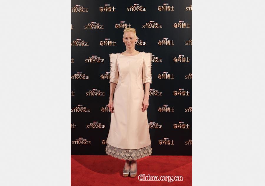 It was like a rock concert when thousands of screaming fans showed up in Shanghai to watch actor Benedict Cumberbatch, actress Tilda Swinton and director Scott Derrickson promote their new Marvel film Doctor Strange on Sunday. Marvel Studios' Doctor Strange follows the story of world-famous neurosurgeon Dr. Stephen Strange, who, while trying to recover after a horrific car accident, discovers powerful magic in a mysterious place known as Kamar-Taj – the front line of a battle against unseen dark forces bent on destroying our reality.
