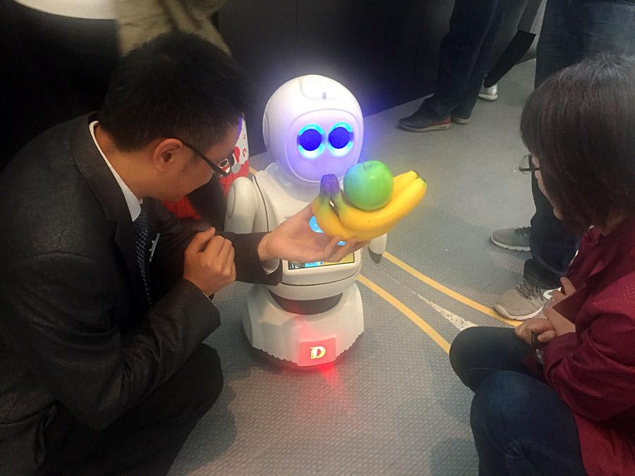 Different types of artificially intelligent (AI) robots are on display at the 2016 AI World Expo, held in Beijing on Oct 18, 2016. One popular exhibit was the "web celebrity" robot Xian'er Robot Monk. Xian'er was designed by researchers and monks at Longquan Temple in Beijing, and made a big splash among netizens when it debuted in 2015 in Guangzhou. (Photo/People's Daily Online)