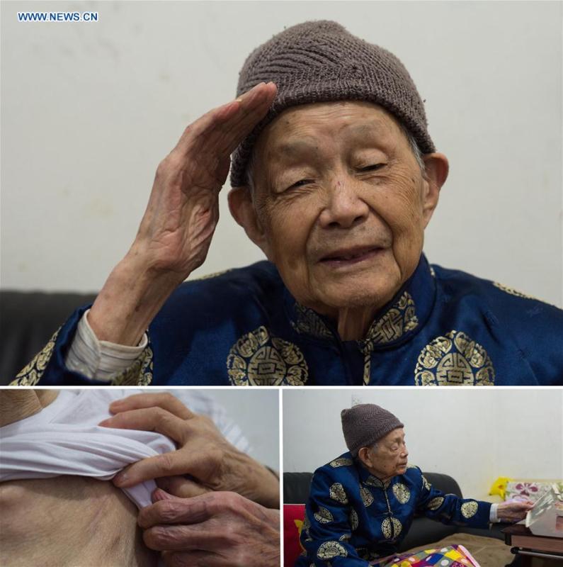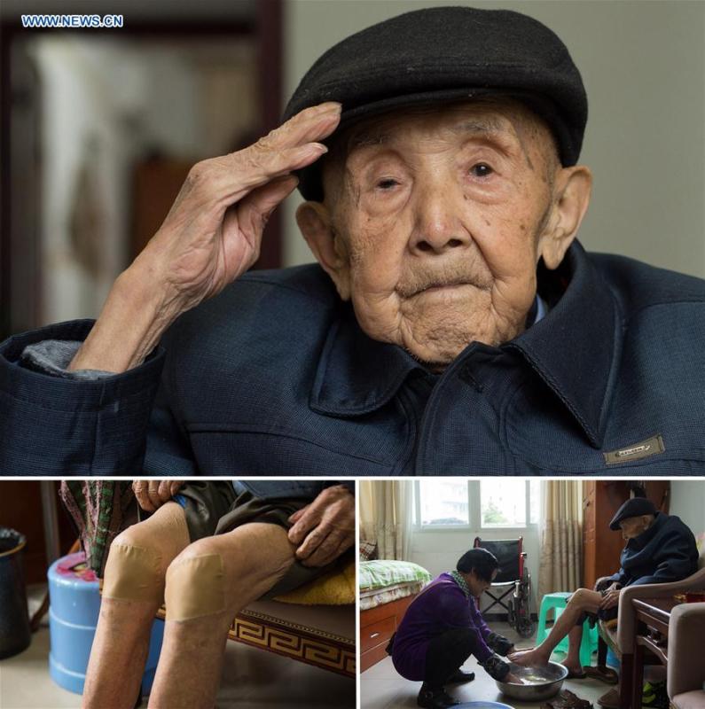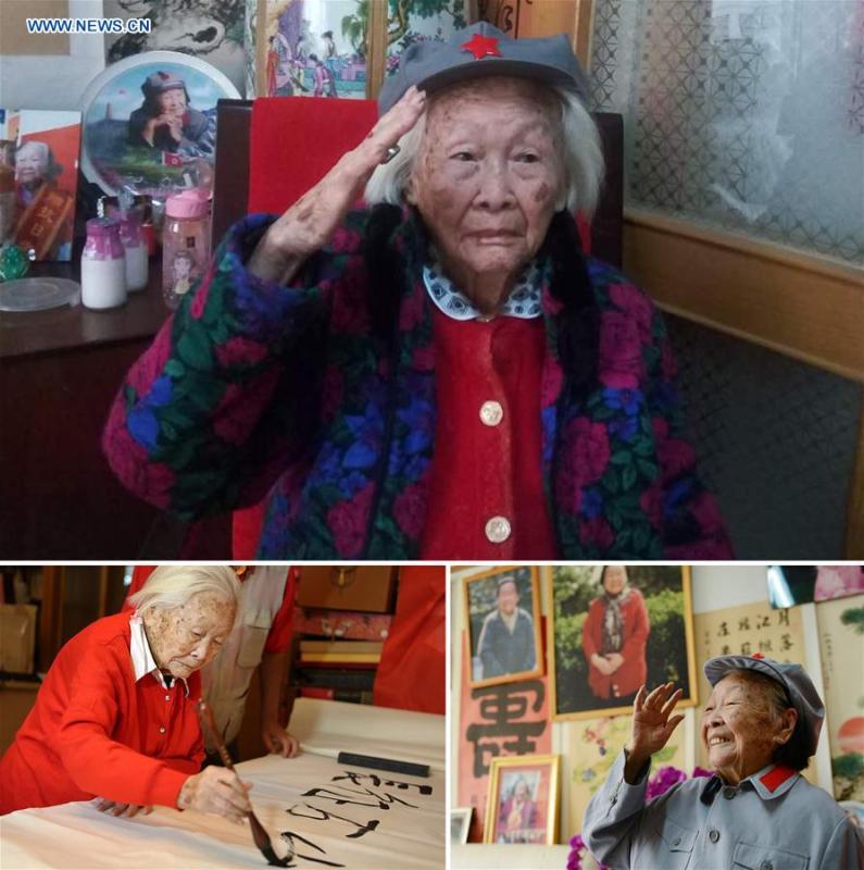 The photo taken on Oct. 11, 2016 shows Hao Yi, a 100-year-old Red Army veteran. This year marks the 80th anniversary of the end of the Red Army's Long March, which started from October 1934 to October 1936. During the Long March, the Red Army, the forerunner of the People's Liberation Army (PLA), carried out a daring military maneuver that laid the foundation for the eventual victory of the Communist Party of China (CPC). The Red Army marched through raging rivers, snowy mountains and arid grasslands to break the Kuomintang regime's grip on the country and to continue their fight against Japanese invaders. Some of them marched as far as 12,500 kilometers, enduring hunger, thirst and cold. (Xinhua/Lu Boan)