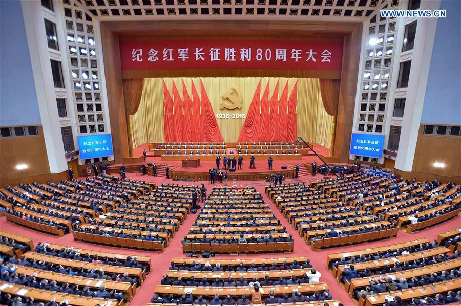 A convention is held to commemorate the 80th anniversary of the victory of the Long March at the Great Hall of the People in downtown Beijing, capital of China, Oct. 21, 2016. (Photo/Xinhua)