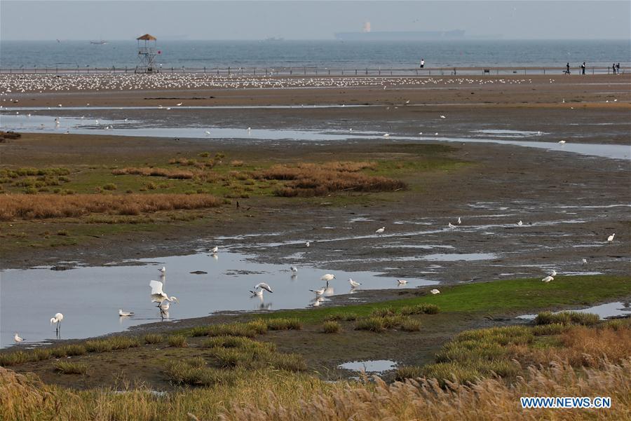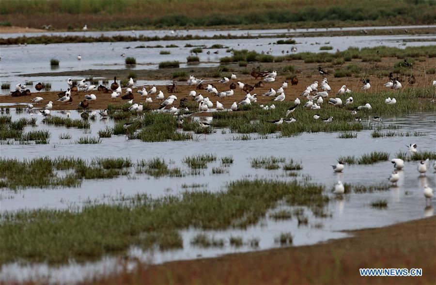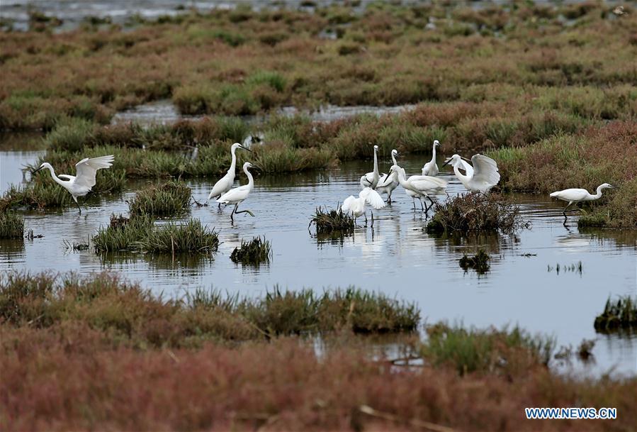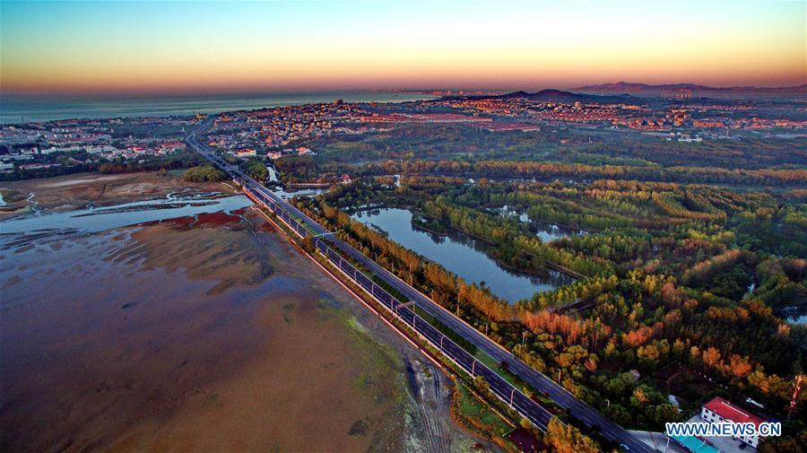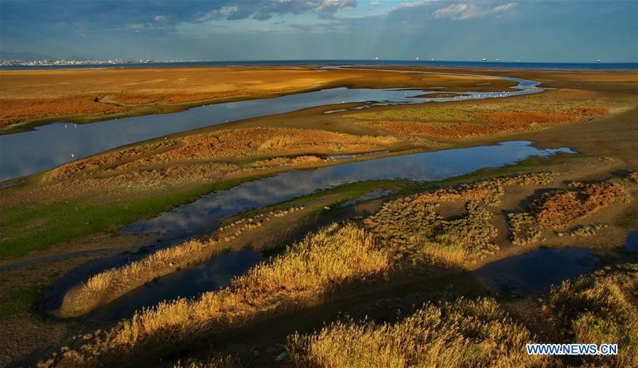 Aerial photo taken by a drone on Oct. 20, 2016 shows the Beidaihe wetland in Qinhuangdao, north China's Hebei Province. The Beidaihe wetland, covering an area of 164.2 hectares, with more than 450 kinds of birds attracted many tourists and bird observers. (Photo:Xinhua/Yang Shiyao)