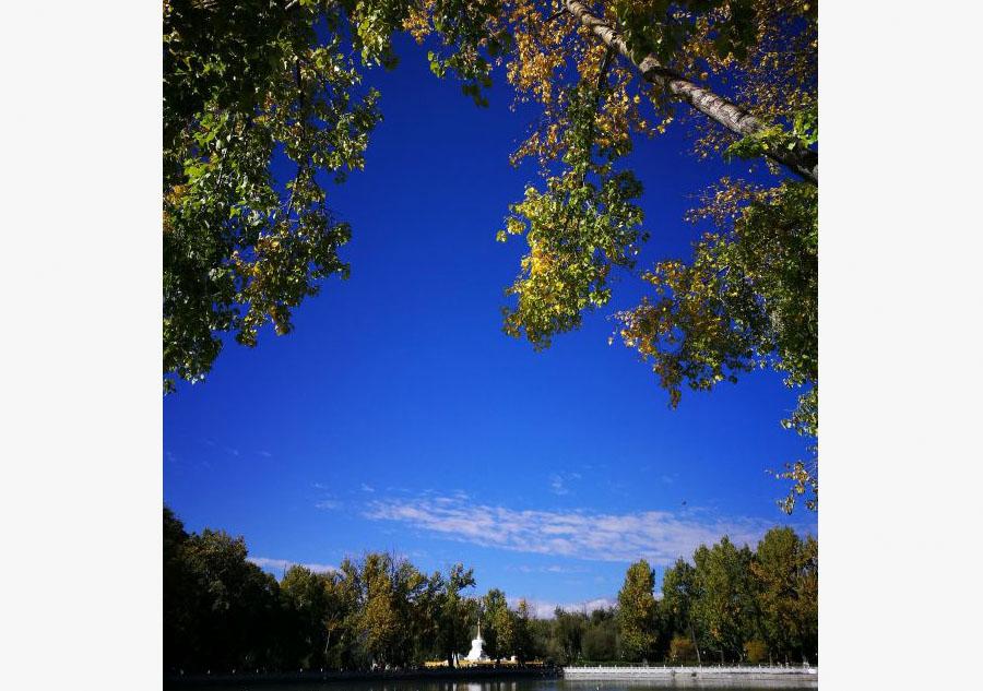The intoxicating blue sky in China's Tibet autonomous region. Tibet leads the country and the world in solar energy resources. In Lhasa, the capital city of the region dubbed the "city of sunlight", the average annual duration of sunshine is 3,005 hours. Tibet enjoys a pure, transparent blue sky all year long thanks to its high altitude, strong sunlight and clear air. (Photo/Provided to China Daily)