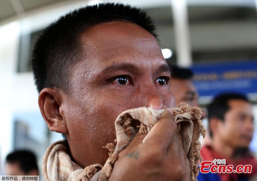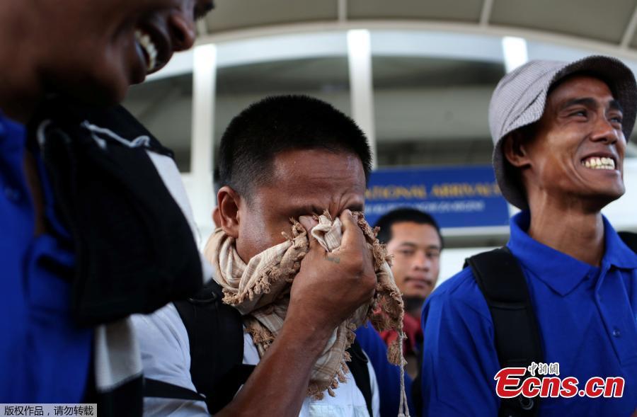A sailor who had been held hostage by pirates for more than four years, and was released with others in Somalia, smiles as he arrives at the airport in Nairobi, Kenya, Oct. 23, 2016. A group of 26 hostages freed from nearly five years in the hands of Somali pirates touched down in Kenya, with both tears and smiles marking the end of their ordeal. (Photo/Agencies)