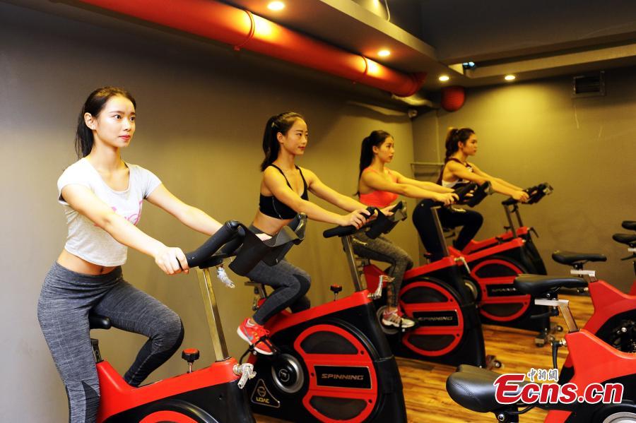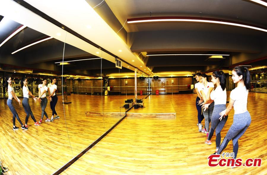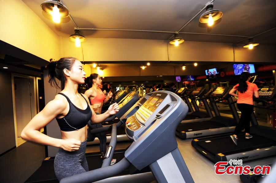 Members of the National Women's Fitness Team train at the fitness and bodybuilding training center in Chengdu University in Chengdu City, the capital of Southwest China’s Sichuan Province, Oct. 24, 2016. The team will participate in the World Fitness Championships to be held in Poland.(Photo: China News Service/An Yuan)