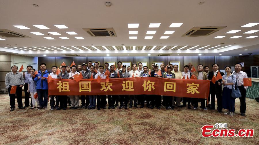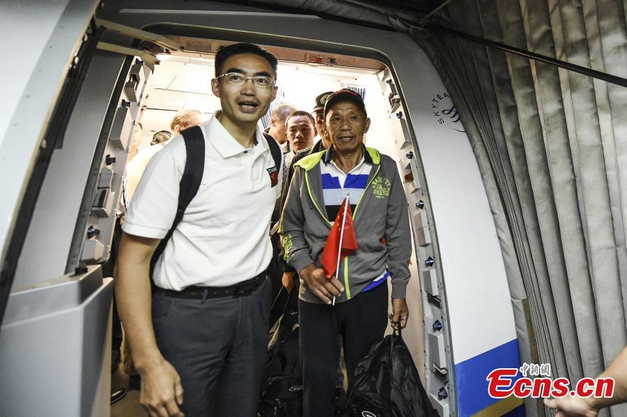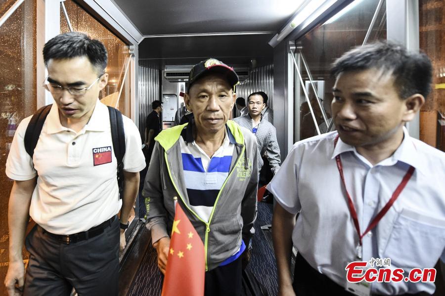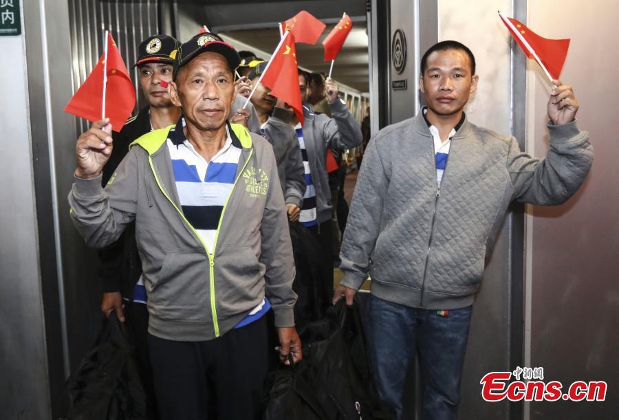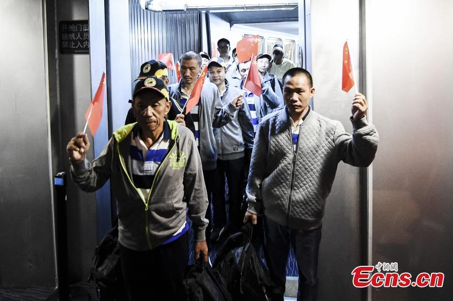 Chinese sailors released after being held captive by Somalia pirates for more than four years arrive at an airport in Guangzhou City, South China’s Guangdong Province, Oct. 25, 2016. One sailor continues to receive treatment in Kenya and the other nine returned to China on Tuesday. (Photo: China News Service/Zhong Xin)