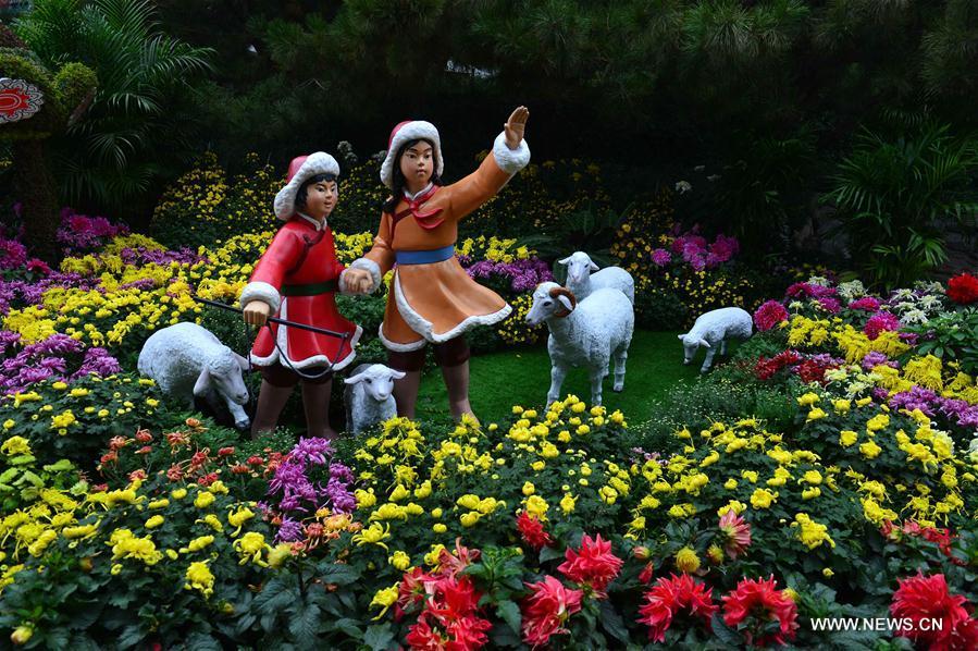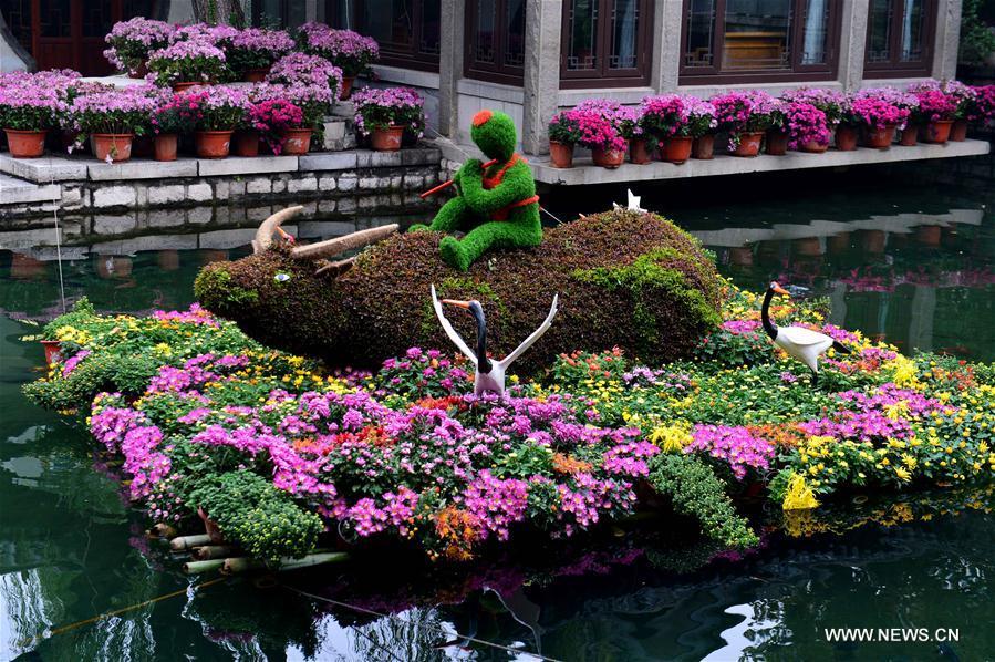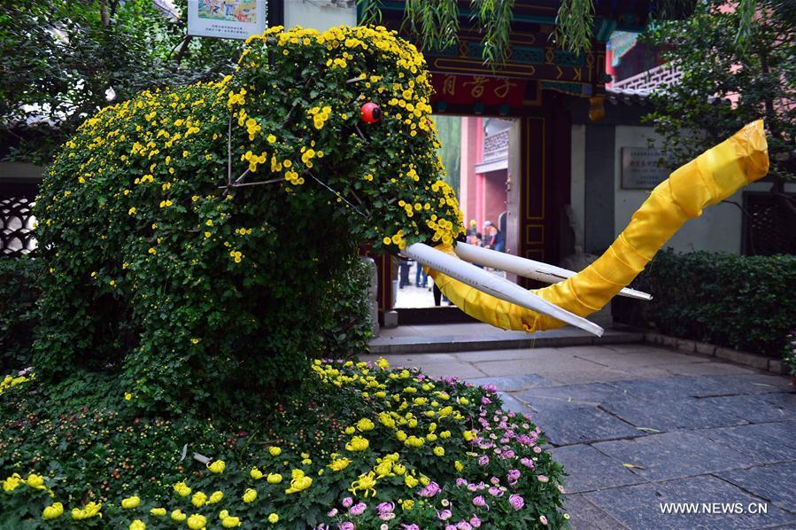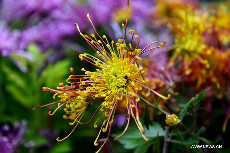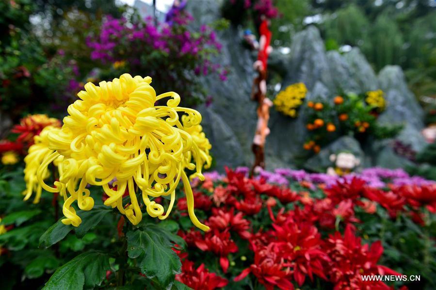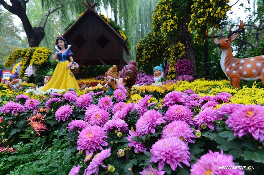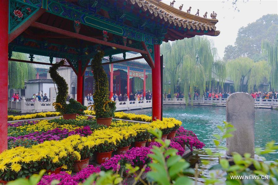 Chrysanthemum blossoms are displayed at the Baotu Spring Park in Jinan, capital of east China's Shandong Province, Oct. 26, 2016. (Xinhua/Guo Xulei)
