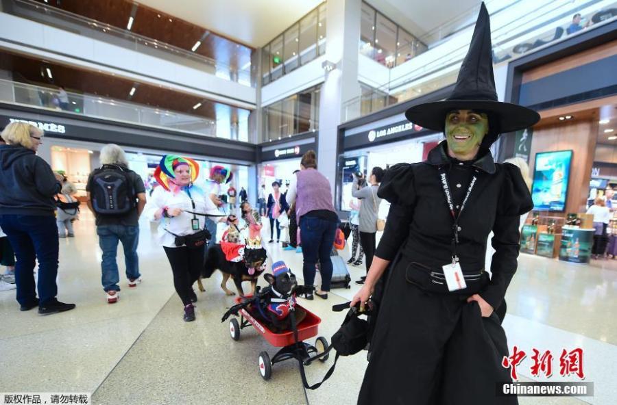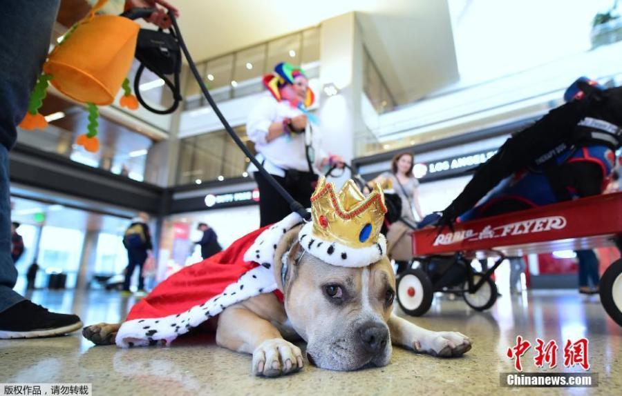 Dogs wear Halloween costumes as part of a program to lighten passenger travel stress at Los Angeles airport in Los Angeles, California, the United States, Oct. 28, 2016. (Photo/Agencies)