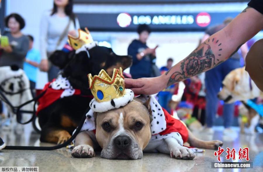 Dogs put on Halloween costumes to help relieve stress at L.A. airport(1/4)