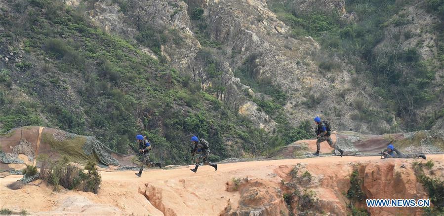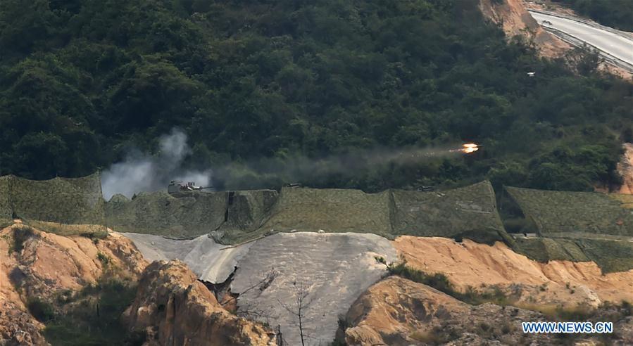 The Hong Kong Garrison of the Chinese People's Liberation Army (PLA) holds a military drill in Hong Kong Special Administrative Region, south China, Oct. 31, 2016. (Photo/Xinhua)