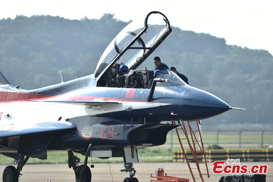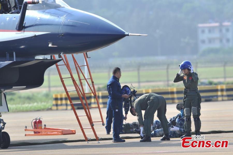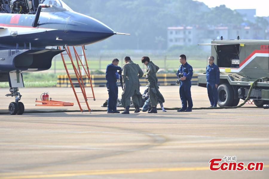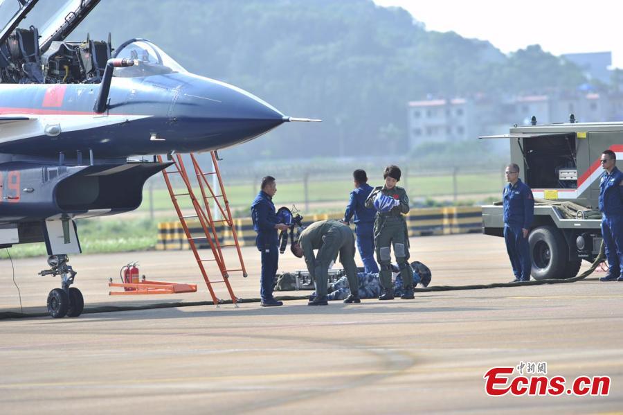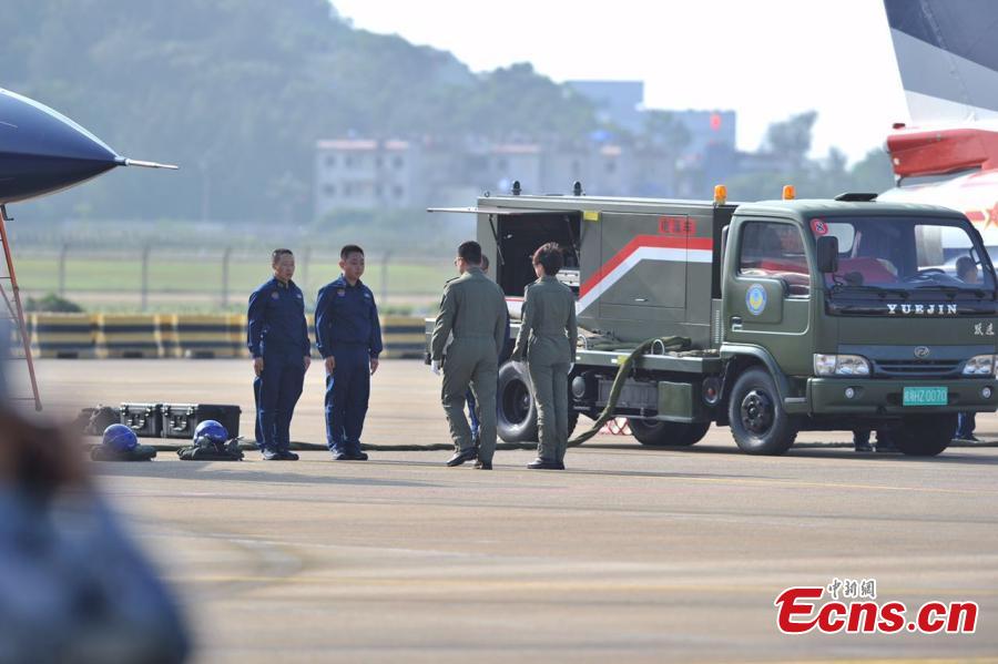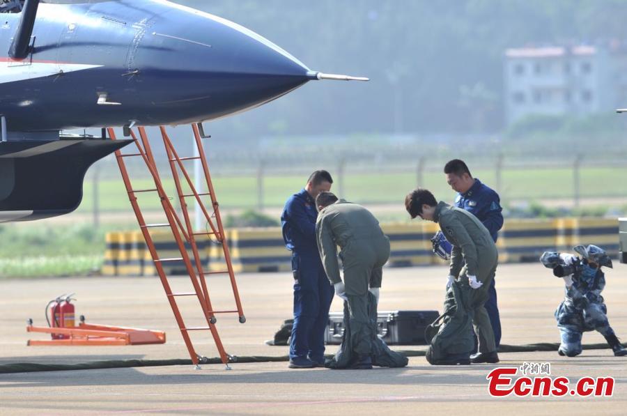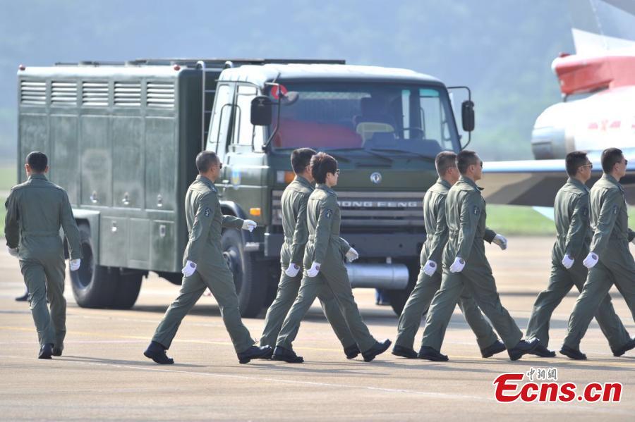 Female fighter jet pilots are ready to perform at Airshow China 2016 on November 1, 2016. The biennial event is held in the coastal city of Zhuhai, South China's Guangdong province, from Nov 1 to 6, attracting more than 700 exhibitor from 42 countries and regions.(Photo: China News Service/Jin Shuo)
