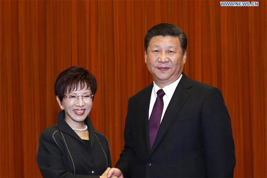 Xi Jinping (R), general secretary of the Communist Party of China Central Committee, meets with a delegation led by Hung Hsiu-chu, leader of Taiwan's Kuomintang (KMT) Party, at the Great Hall of the People in Beijing, capital of China, Nov. 1, 2016. (Photo/Xinhua)